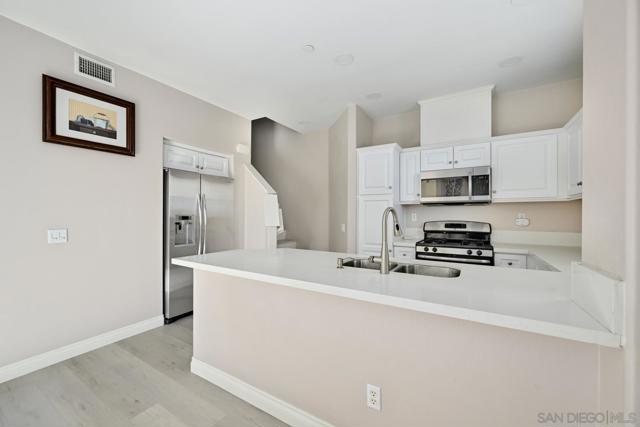Set within a gated community just 20 minutes from the beach, this fully renovated Oceanside condo delivers modern design, thoughtful upgrades, and peaceful river views. Completely updated from top to bottom, the home features luxury waterproof vinyl plank flooring throughout (no carpet) and a beautifully redesigned kitchen with white quartz countertops, stainless steel appliances, and a new dishwasher—perfect for both everyday living and entertaining. The open-concept layout connects the kitchen, dining, and living areas and opens to a private balcony where you can enjoy tranquil views and coastal breezes. The home feels light and bright throughout, enhanced by high ceilings on every level—including the tall, oversized attached two-car garage. Both bedrooms offer en-suite bathrooms, with the primary suite featuring a walk-in closet, dual-sink vanity, and separate water closet. Additional upgrades include a new washer and dryer, central A/C, ceiling fans, generous storage, and a Halo self-cleaning whole-home water filtration system installed in the garage. Residents enjoy beautifully maintained grounds with lush green spaces, a sparkling pool and spa, and BBQ areas. The location is unbeatable—pickleball and tennis courts just two blocks away, multiple nearby parks, and the San Luis Rey 9-mile bike trail starting just across the river. Shopping, dining, transportation, and coastal attractions are all close by, making this home the perfect blend of comfort, recreation, and convenience.