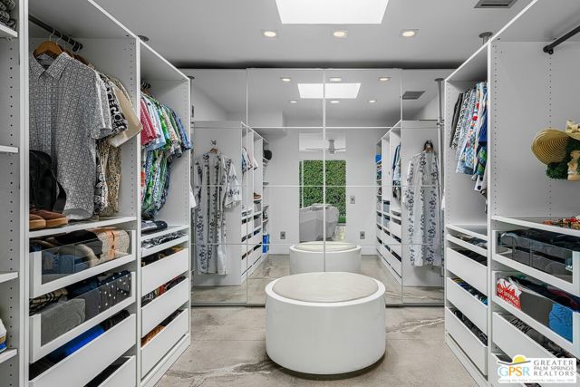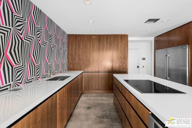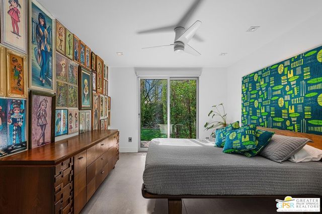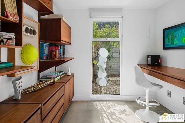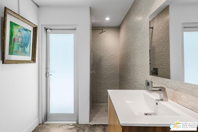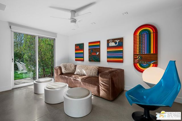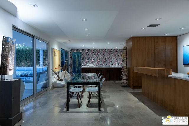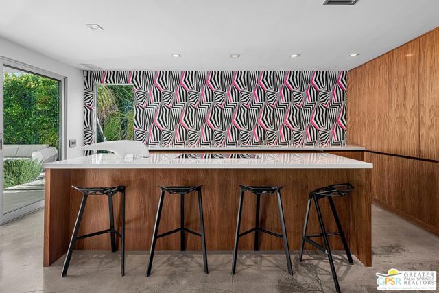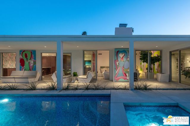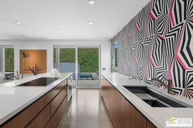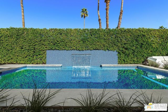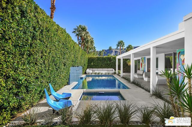 Architecturally significant, AIA award-winning Kenneth David Lee partnered with notable Palm Springs builder John Caranci executing this modern home in coveted Indian Canyons. Gallery-like interiors with polished concrete floors, bespoke walnut cabinetry, high-end modern finishes, and abundant built-in storage. Chef's kitchen features massive refrigeration/freezer, induction cooktop, and a large entertainer's bar with secondary refrigeration and wine storage. Stunning bathrooms include a primary suite with oversized steam shower and generous outdoor garden shower. Exceptionally private yard with a striking all-glass mosaic tile pool and spa, surrounded by mature landscaping. Owned solar with three backup batteries, whole-house water filtration, and thoughtfully updated systems throughout. Adjacent to world-class golf and endless hiking trails.