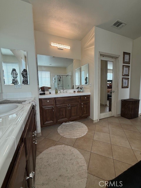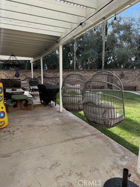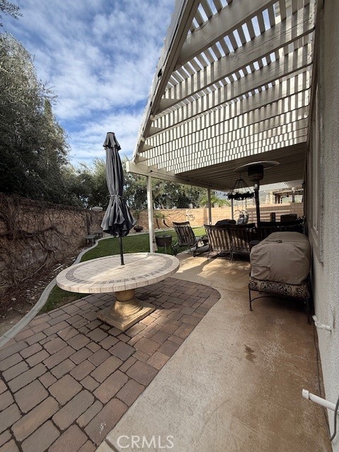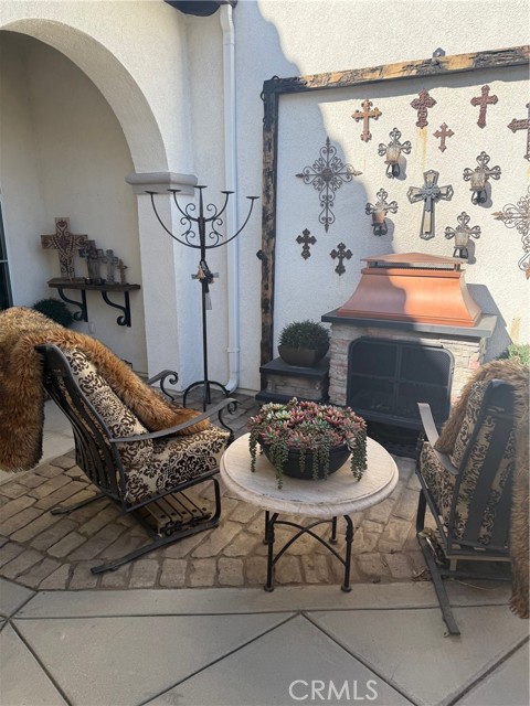 Spacious primary suite with sitting area, dual vanities, and large jetted tub. Enjoy year-round outdoor living with a full-length covered patio with pergola caps and a private gated courtyard with fountain. 2-car garage with tandem parking and storage.