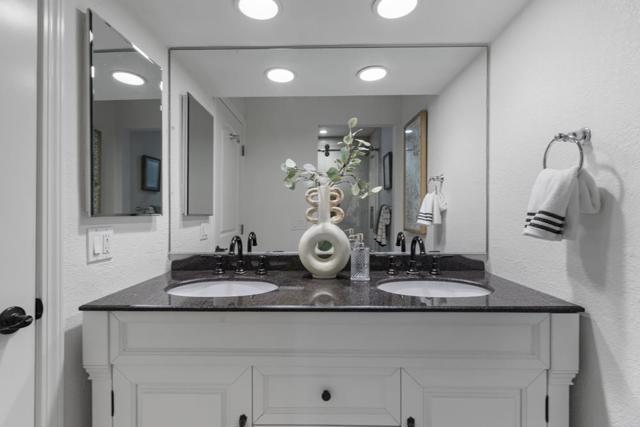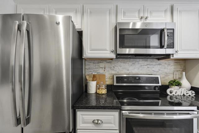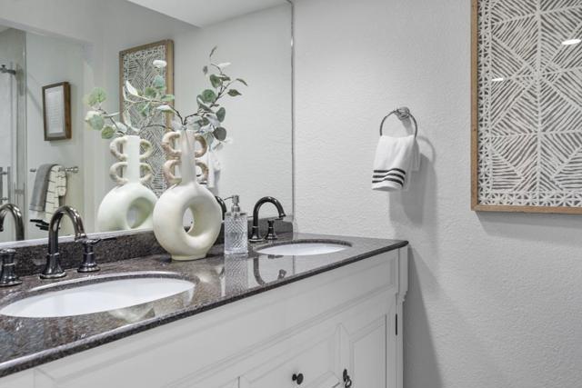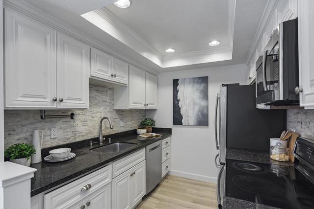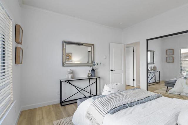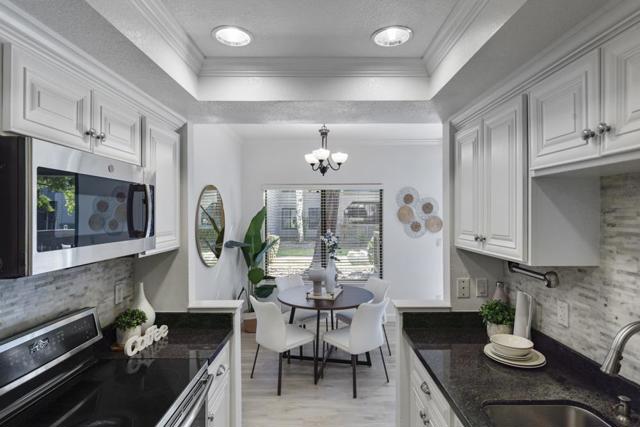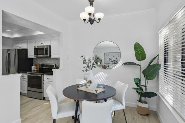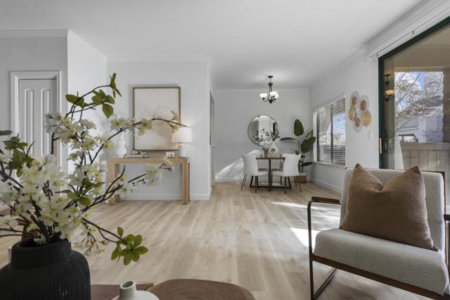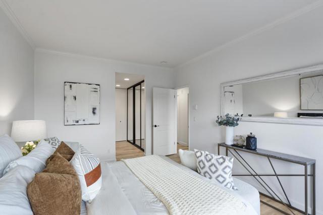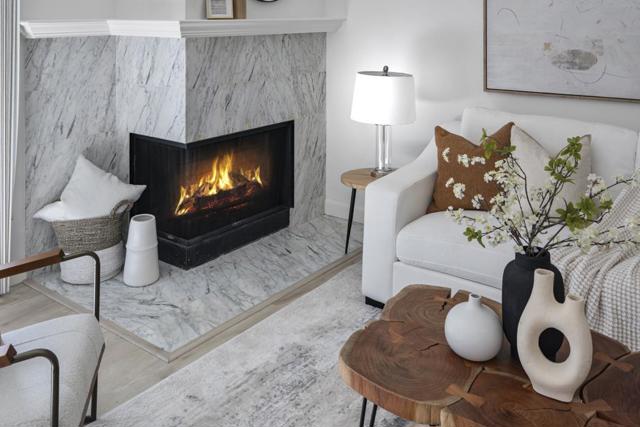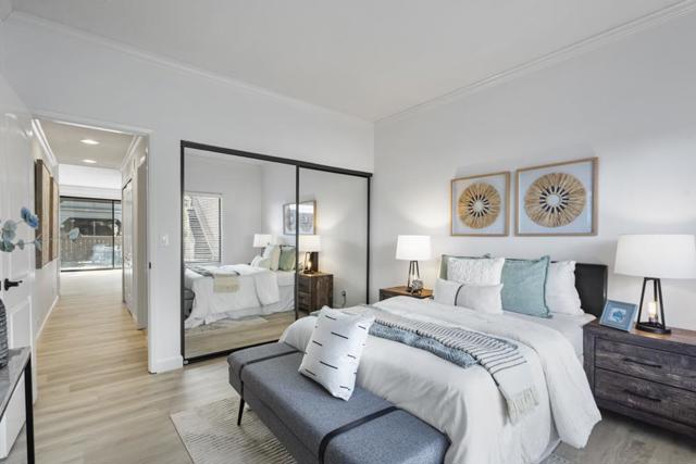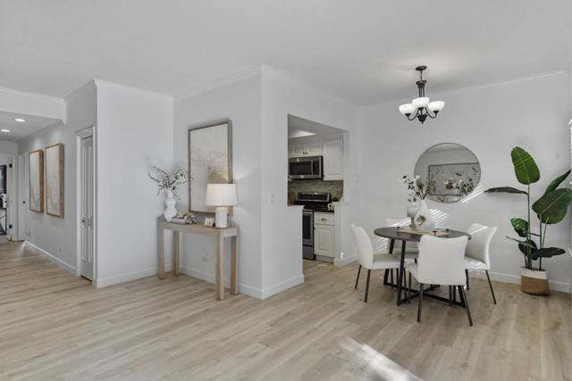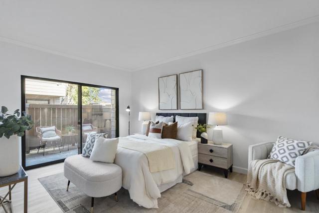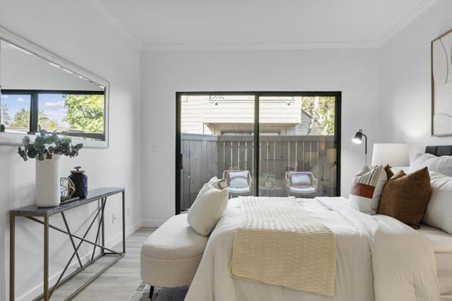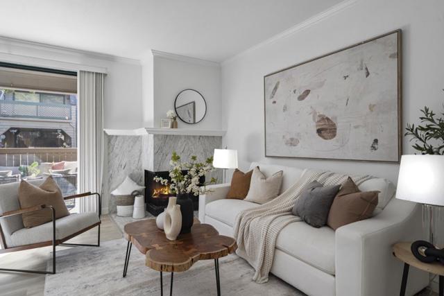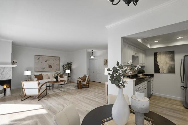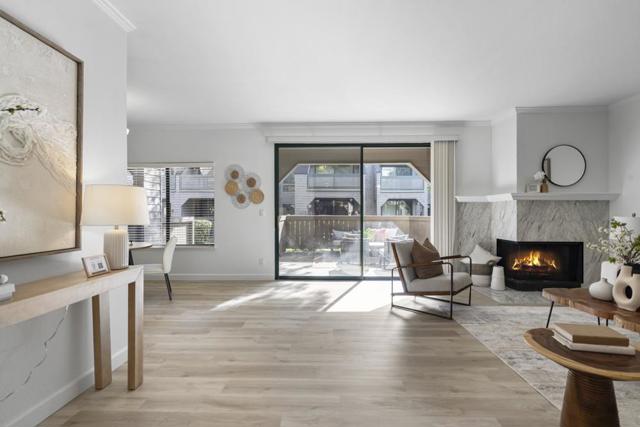 Set on serene Redwood Shores Lagoon, this home offers a thoughtfully updated ground-level condo with inviting interiors. Inside freshly installed white oak LVP runs throughout, complemented by crown molding and high ceilings that enhance the sense of space. The open-concept living & dining is filled with natural light & anchored by a wood-burning fireplace. Glass sliders open to a generous patio with storage and serene greenbelt views. The updated kitchen features granite countertops, stacked-stone backsplash, & stainless steel appliances like a Bosch dishwasher. The primary suite has its own dedicated patio and a pass-through dressing area with ample closets leading to the en suite bath, which includes dual sinks, granite vanity, porcelain tile flooring, and a separate wet room with walk-in shower with a pebble-stone floor. A second bedroom overlooks the front courtyard and fountain. A full hallway bath with Toto washlet, linen storage, and a hallway laundry closet with full-size side-by-side units complete this space. Pelican Cove offers winding walkways along the lagoon, two pools, spa, clubhouse, kayak storage, guest parking, and boat storage. Close to the Redwood Shores Library, shopping, dining, Caltrain, US 101, CA-92, and centrally between SF and Silicon Valley.