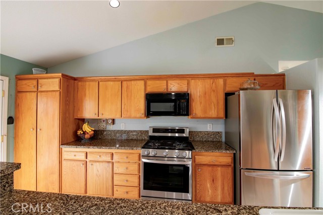 Welcome to this charming single-story home offering 4 bedrooms, 2 bathrooms, and 1,517 square feet of comfortable living space. Designed with an open floor plan, the interior features vaulted ceilings that create a bright, airy feel and a kitchen equipped with granite countertops that flows seamlessly into the main living areas—ideal for everyday living and entertaining. Laundry is conveniently located in the hallway for easy access. The home is equipped with solar panels, providing energy efficiency and potential savings. The garage also features newly installed epoxy flooring throughout. Step outside to a covered patio perfect for gatherings, along with a low-maintenance backyard featuring newly poured cement and a brand-new shed that stays with the property. Possible RV access adds extra flexibility, and with no HOA, you’ll enjoy added freedom. Ideally located close to shopping, schools, and with easy freeway access, this home offers both convenience and comfort.