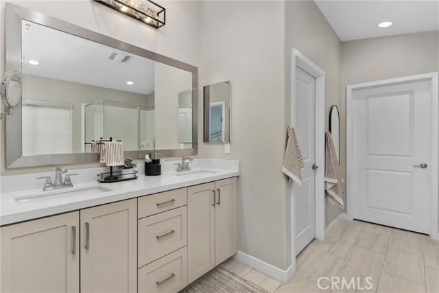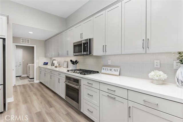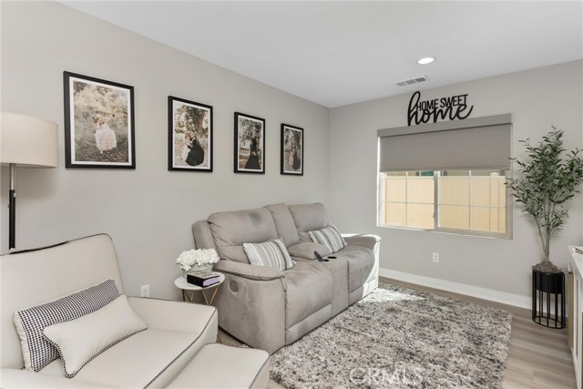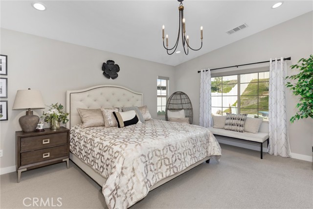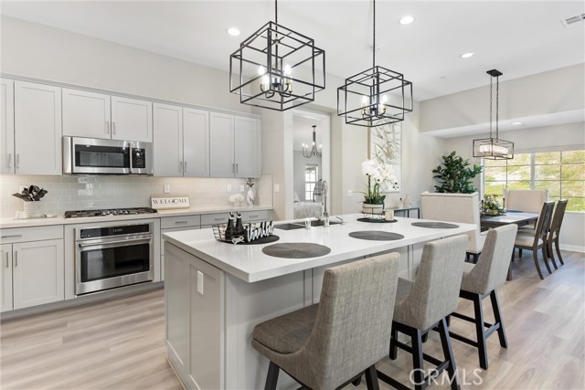 Beautifully upgraded, Lina 3 plan, 3 bedroom and den, 2 bath home located in the highly desirable 55+ Altis Community of Beaumont, CA. This modern single-story residence features a A PAID 10 PANEL SOLAR SYSTEM, custom interior paint, LED lighting, and upgraded flooring throughout. The gourmet kitchen showcases quartz countertops, upgraded cabinetry with premium hardware, stainless steel appliances, a large island with pendant lighting, under-cabinet lighting, a stainless steel sink with soap dispenser and a stylish tile backsplash. The primary suite includes clear glass show enclosure and framed mirrors in both bathrooms adding a refined touch to the home's contemporary design. Outside a lovely rear yard with artificial grass for low maintenance so you can enjoy retirement.