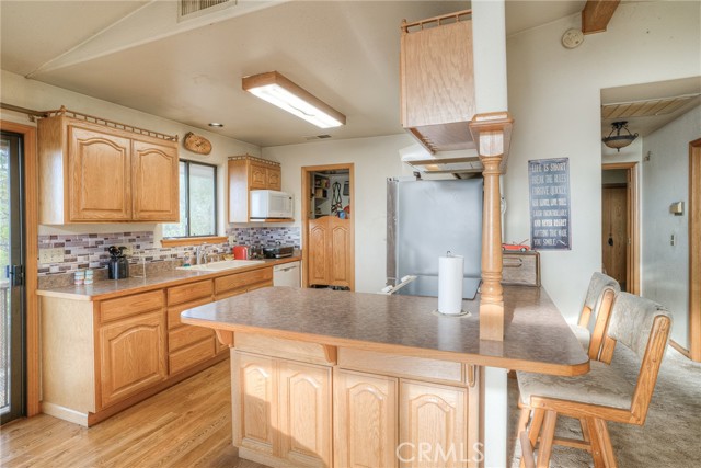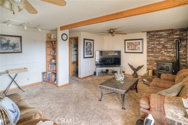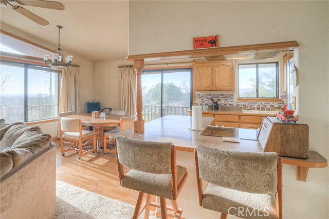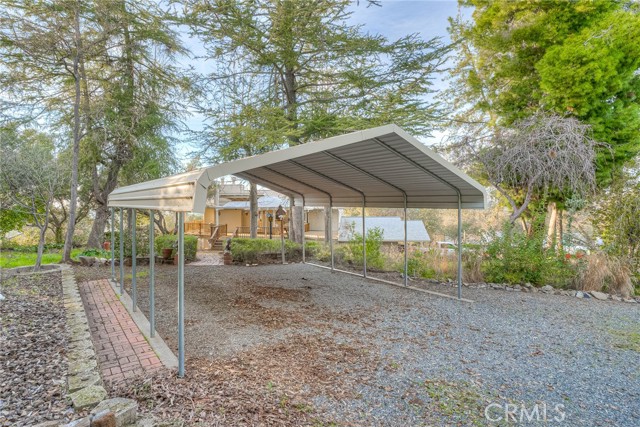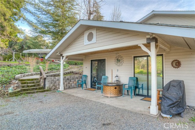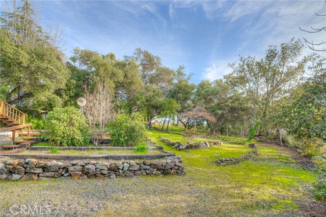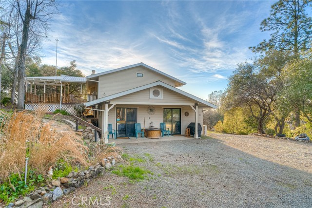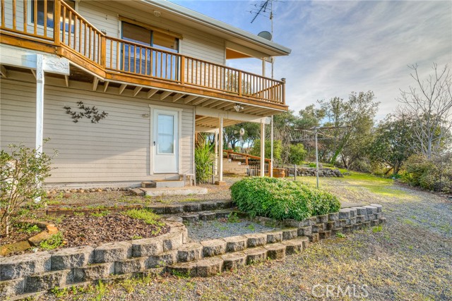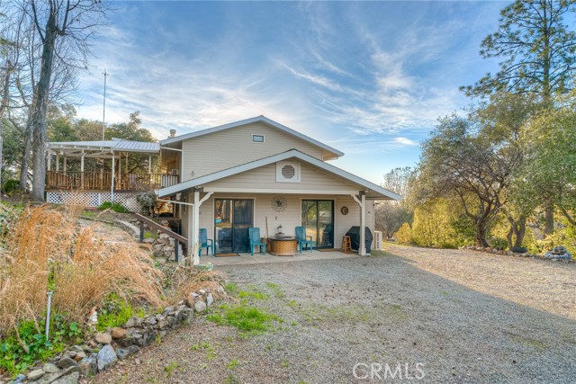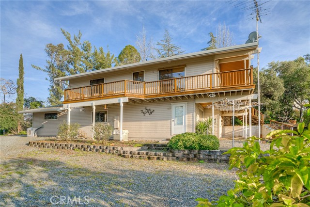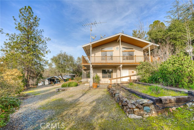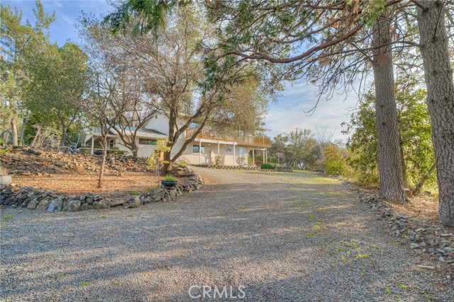 Beautiful 4 acre property with many Olive trees. In the East Foothills. Not far from the Lake. The two story home was built in 1981. But burnt and rebuilt in 1997. Entering from the 2nd level there is a large covered deck which wraps around the house to the back. Views of the valley from the Big O on Table Mountain around to the Marysville lights. Through the front door you enter the living room dining area and kitchen. There is vaulted ceiling two large windows and ceiling fan. Living room has Fire place. Kitchen has a breakfast bar and pantry. Primary bedroom is very large with two closets. Downstairs is a family room with a pellet stove. 2 bedrooms and a Utility room that could be a 4th bedroom. 2 slider glass doors. A lot of storage inside and out. Outside a RV carport with attached single car garage. With plenty of parking. Large shop. 5 sheds. The house sits back on the property with the front level land. There alot to see. Come take a look.