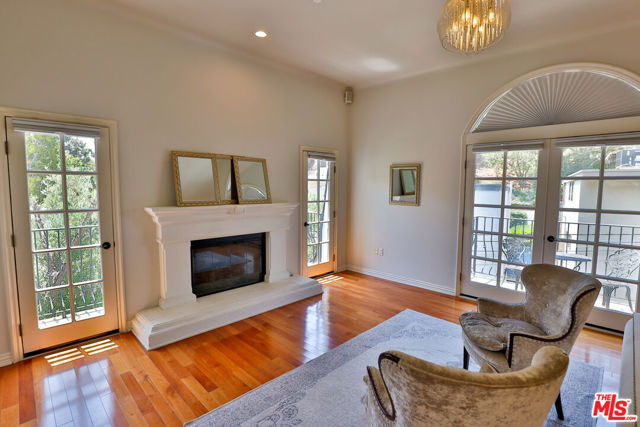French chteau vibes meet pure California living. Set on one of the most sought-after streets in Beverly Hills Post Office, just minutes from the Beverly Hills Hotel, this light-filled, turn-key residence offers style, flow, and privacy. The contemporary interior features hardwood floors throughout and a newly remodeled kitchen designed for everyday living and effortless entertaining. The home features four bedrooms and three baths, with the fourth bedroom ideally suited as an office or bonus room. The primary suite is a standout with a fireplace, private balconies, spa-like bath, and walk-in closet. Multiple terraces capture serene canyon and nature views. The secluded backyard offers a private spa, built-in BBQ, and outdoor TV perfect for hosting or unwinding. A two-car garage with direct entry and a generous storage room complete the home. Great layout. Easy flow. Instant "home" feeling. This is BHPO living done right.