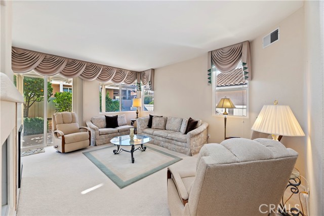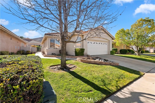 ***FIRST TIME EVER ON THE MARKET!!! ***ORIGINAL OWNER IS MOVING OUT OF THIS IMMACULATE, TURN-KEY & MOVE-IN READY HOME!!! LOCATED IN THE BEAUTIFUL SUN LAKES COMMUNITY of 55+ just Steps away from Sun Lakes Indoor Pool, Tennis/Pickle Ball Courts, Gyms & 2 GOLF COURSES! Walking Up to the Front Door, you will notice the Property's Landscaping is tastefully maintained & the Garage Door has Designer Windows to give Natural Light into the Garage Space with a Designer Look. Upon Entering the Front Door, you're welcomed by a quaint foyer, open floor plan, & Loads of Natural Light Throughout.*** Pride of Ownership Shows Here***Neutral Painted Walls, Neutral Custom Drapery, Tile Floors & Plush Carpet that is Clean & Ready for the New Owner! This Home Features 2 Large Bedrooms & a Flex Space perfect for an Office or Reading Corner, 2 Full Bathrooms, a Large Living Room with Fireplace & Dining Area. The Primary Bedroom has a Large Walk-in Closet & a Slider for easy access to your Peaceful Backyard. This Property has a ton of cabinets for extra storage, lots of counter space & ceiling fans. The backyard has ample space, tranquil setting with a patio cover that was redone a few years ago along with the painted exterior, many fruit trees & lush landscaping, all wrapped around upgraded vinyl fencing. There is an upgraded sink next to the washer & dryer for all your laundry needs & extra space for a golf cart, in addition to the 2-car garage. The Sun Lakes Community Has Many Country Club Amenities like A Club House, Restaurant, Library & Activities Galore! This Home is a Gem in one of California's Best Retirement Communities. Did I mention your High Speed Internet & Cable TV through Spectrum, is included in Sun Lakes HOA Dues? Also, Sunlakes has RV Parking at "next to nothing" rates All for Sunlake Residents! The Possibilities are Endless & The Future is Bright here at Sunlakes!