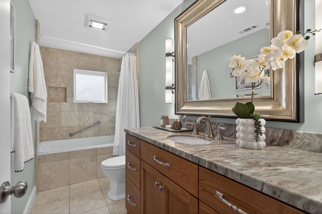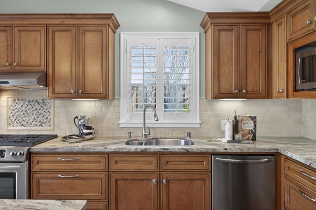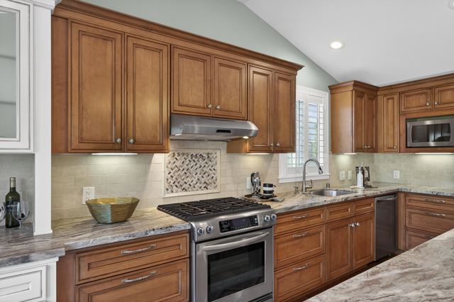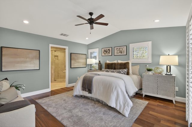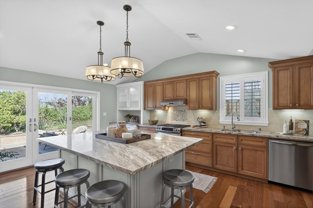 Welcome to this meticulously renovated single-story home in the heart of Martinez! This completely transformed stunning 4-bedroom, 2-bath home was taken down to the studs in 2012 with all major systems, plumbing, electrical, and HVAC replaced. As you step inside, you'll appreciate the great room's open floor plan, bathed in natural light, with rich hardwood floors & soaring vaulted ceilings. The spacious area flows effortlessly into a true cook's kitchen, showcasing a massive island perfect for entertaining, stainless steel appliances, a gas range, a brand-new refrigerator, & a convenient walk-in pantry. The private, primary suite is your sanctuary, featuring a spa-inspired ensuite with a luxurious walk-in shower & a generous walk-in closet. Secluded across the living space, you'll find 3 additional bedrooms & a full bath, providing ample space for family or guests. The dedicated laundry room offers built-in storage & functionality. Outside, discover your own private refuge with professionally hardscaped patios ideal for al fresco dining, low-maintenance landscaping, & a storage shed. This premium corner lot location puts you within walking distance to Hidden Lakes Park & pickleball courts, top-rated schools, and provides easy freeway access. Don't miss this turnkey opportunity!