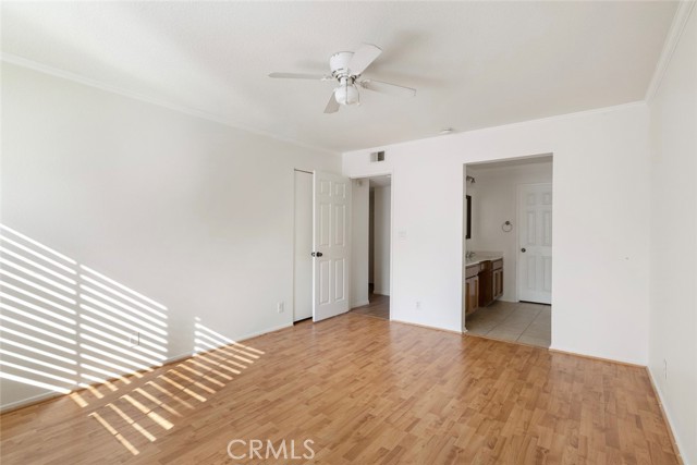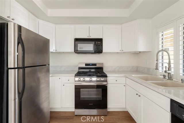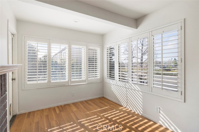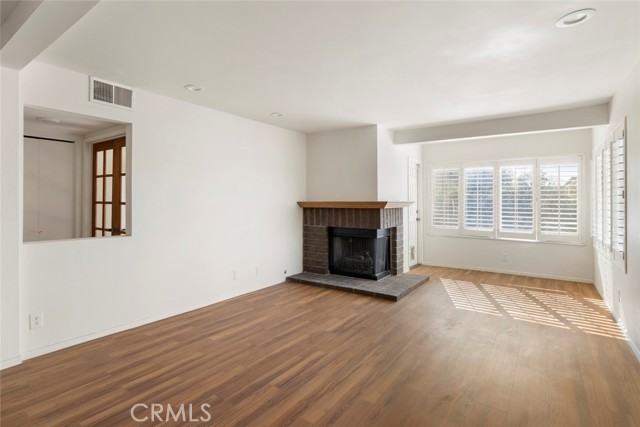Welcome to this light-filled, 2-bedroom, 2-bath condo offering the perfect blend of comfort, convenience, and California living. Inside, the recently updated interior is bright and inviting, featuring laminate flooring throughout. The spacious living area is anchored by a cozy fireplace, enhanced by plantation shutters, and enjoys peaceful, open views from the living room. The unit also features a private balcony, perfect for morning coffee or evening relaxation. The recently renovated kitchen offers a fresh, modern feel and is equipped with ample cabinetry and functional workspace. An in-unit laundry adds everyday ease. The primary bedroom offers a peaceful retreat with an ensuite full bath featuring double sinks, and generous closet space. French doors lead to the secondary bedroom, making it ideal as a guest room, creative space, or work-from-home office.