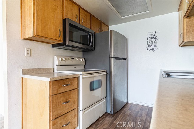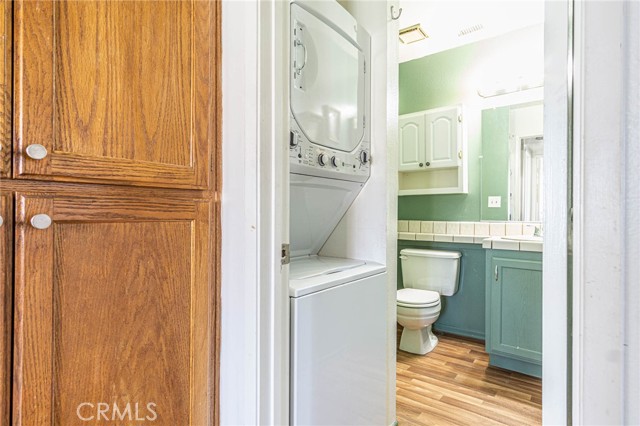 The kitchen includes a bright eating nook and plenty of cabinet space. The guest bedroom offers a comfortable layout and convenient access to the hall bath, where you’ll also find the washer and dryer.