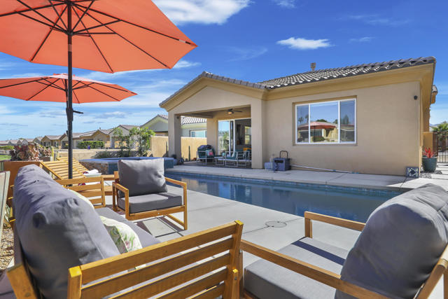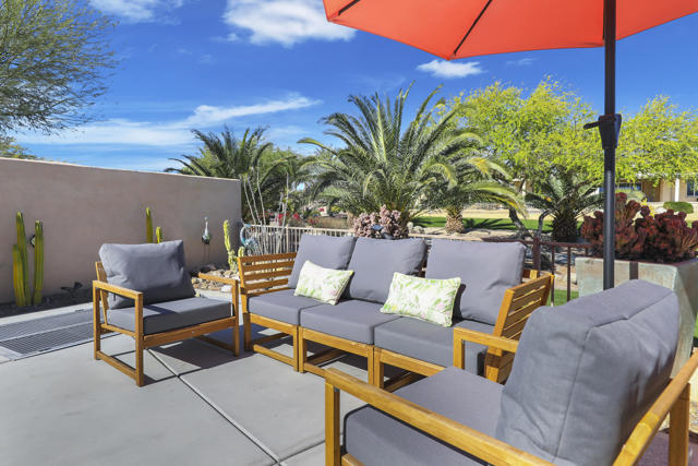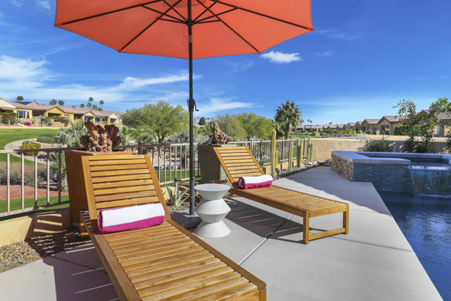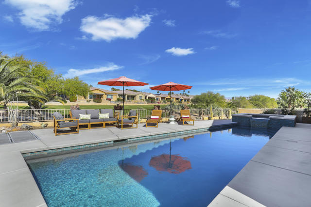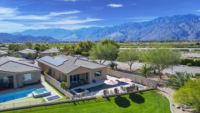 Set on fee land in the desirable Desert Princess community, this beautifully maintained home blends comfort, privacy, and effortless desert living. Positioned on a premium corner lot, it offers enhanced outdoor space and a welcoming indoor‑outdoor flow.The bright great room features abundant natural light, a cozy fireplace, and direct access to the covered patio. Step outside to your own private pool and spa, surrounded by a custom privacy wall--an ideal setting for relaxing or entertaining in a tranquil greenbelt location.Energy efficiency is a standout benefit thanks to the OWNED solar system, providing year‑round savings and peace of mind. The spacious primary suite includes a spa‑inspired bathroom with a soaking tub, frameless glass shower, and a custom walk‑in closet. The oversized backyard offers room to personalize and enjoy the desert lifestyle.The home is also short‑term‑rental eligible, offering flexibility for owners who may wish to use the property seasonally or generate additional income.Residents enjoy access to 27 holes of championship golf, multiple pools and spas, a fitness center, tennis and pickleball courts, lakes, and 24‑hour security. Whether as a full‑time residence or a seasonal retreat, this home delivers exceptional comfort and value.