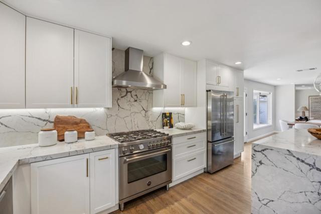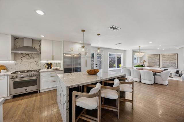 Behind a charming white picket fence and arbor, this beautifully remodeled Midtown home with a separate ADU of 484 square feet provides a total of 2539 square feet of living space. The home offers timeless style, abundant natural light, and exceptional flexibility. The thoughtfully designed main residence features a gourmet kitchen opened to the dining and living spaces that are enhanced by hardwood floors, an inviting fireplace, and a vaulted-ceiling family room spilling out to a Connecticut bluestone patio, creating seamless indoor-outdoor living ideal for entertaining. The spacious primary suite is a private retreat with French doors to the backyard and a spa-inspired bath with dual vanities and an oversized walk-in shower. Two other bedrooms, an updated full bath and powder room complete the main residence. A rare highlight is the separate, permitted ADU with full kitchen and bathroom perfect for guests, extended family, a home office, or rental income. Set on one of Midtown's most desirable tree-lined streets, the location is moments from California Avenue dining, shopping, parks, outstanding Palo Alto schools, Stanford University, and major Silicon Valley tech campuses.