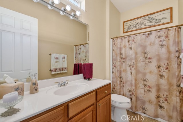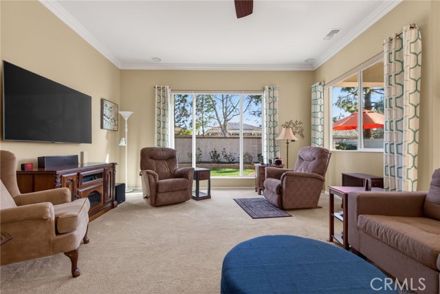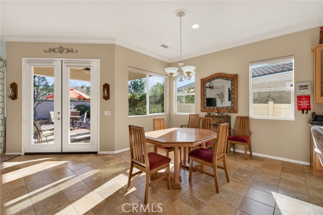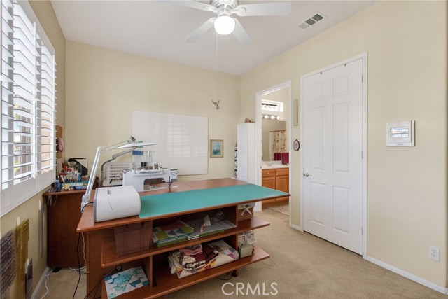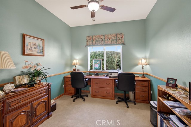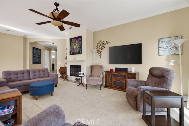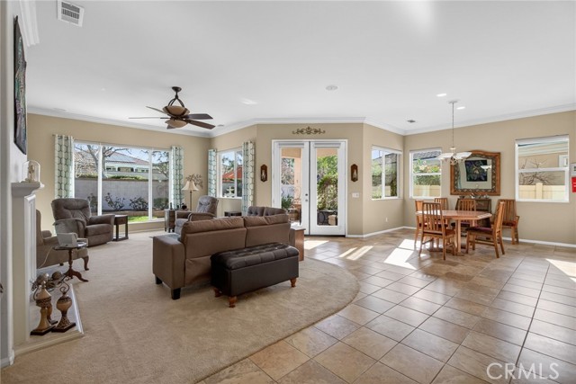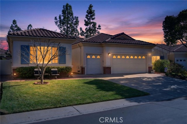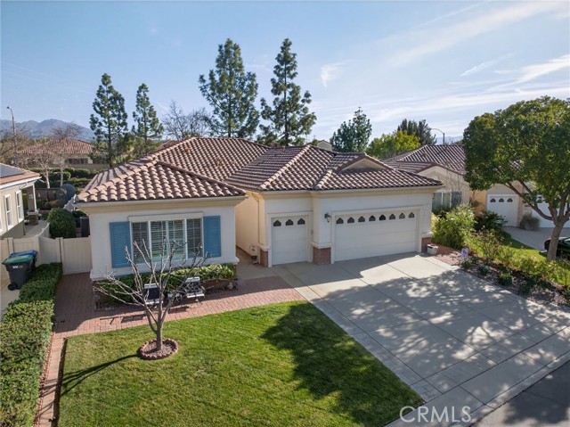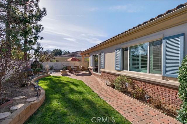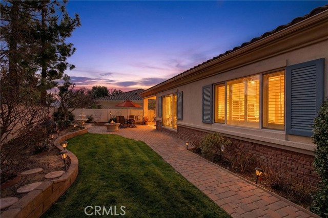 Stunning "Emerald Model" home Located in the highly Coveted retirement community of Solera. The upgrades and immaculate condition will satisfy the most particular individuals. The tile floors start at the entryway and continue through the kitchen, hallways, Bathrooms and Laundry room. The oversized Livingroom has a beautiful and welcoming fireplace and the room is filled with an abundance of natural light. The kitchen and dining room are open to the Livingroom providing the open floorplan concept that is perfect for those large and small get togethers. The kitchen has a large center island, Granite counter tops, upgraded stainless steel appliances and an abundance of cabinets that include some pull-out shelves. The French doors lead out to the structural covered patio that includes a ceiling fan providing an inviting outdoor space complete with Gas firepit to enjoy during cool evenings in this private back yard. There are no rear neighbors, lush landscaping, extended cemented side yard that make this home's location a premium in the community. The owner's suite is located in the rear of the home and is complete with a separate shower, soaking tub, dual sink vanity and oversized walk-in closet. The 2nd bedroom has its own private full bathroom. The office is conveniently located near the 1/2 bathroom. The laundry room has a sink, additional storage cabinets and large closet. The garage provides direct access to the home, and the 3rd stall is the perfect spot for your Golf cart. The home has beautiful shutters and window coverings, neutral paint colors and is spotless. This community and its amenities provide that active lifestyle you have been looking for. Guard gated, pool, clubhouse, billiards room, Tennis, library and so much more. Upgrades include an updated HVAC system. Conveniently located within a short drive to Palm Springs, Oak Glen, Redlands and beyond.