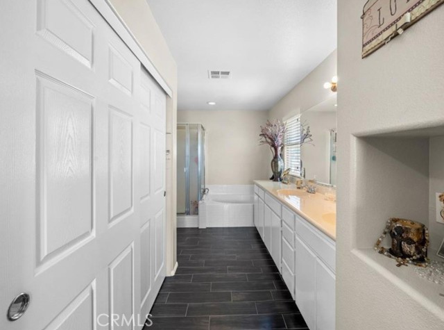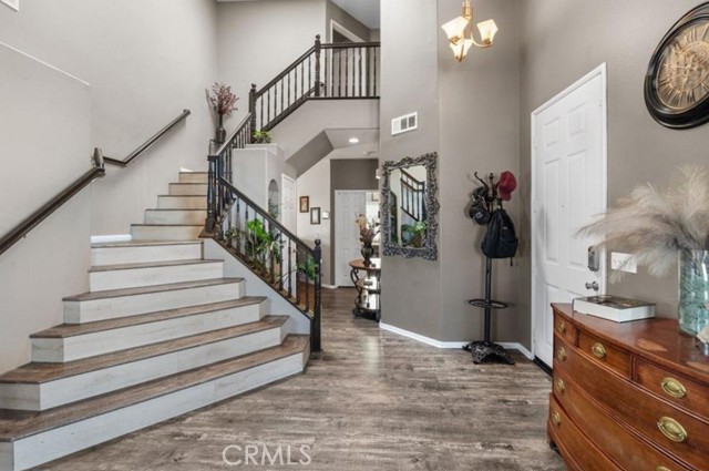 Beautifully updated 5 bedroom, 3 bathroom home. A perfect blend of modern amenities and timeless charm. Inside discover vinyl flooring that flows throughout the spacious living areas, stairs, offering a beautiful modern look. The heart of the home features a well appointed kitchen that opens to a large family room, ideal for entertaining or cozy family gatherings. Each of the five bedrooms offer ample space and comfort, with closet space and plenty of natural light. One of the bedrooms is located conveniently down stairs with a full bathroom. Step outside to enjoy a cemented patio, complete with patio cover, creating an inviting outdoor living space perfect for relaxing. The extended driveway provides convenient RV parking space. This eco-friendly home is equipped with solar panels, ensuring energy efficiency and significant savings on utility bills through out the year. Located near schools and parks amazing for a growing family. This house is ready to become your home. Don't miss the opportunity.