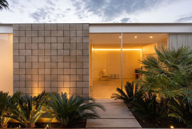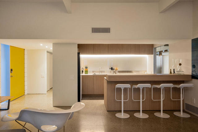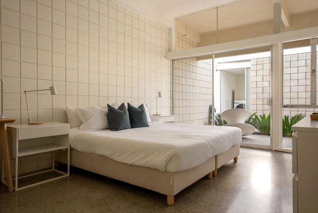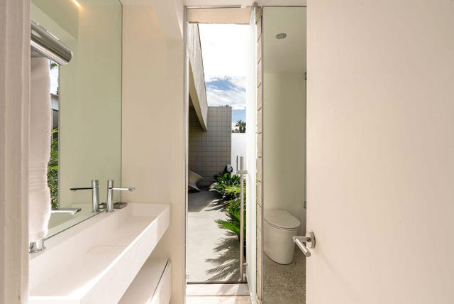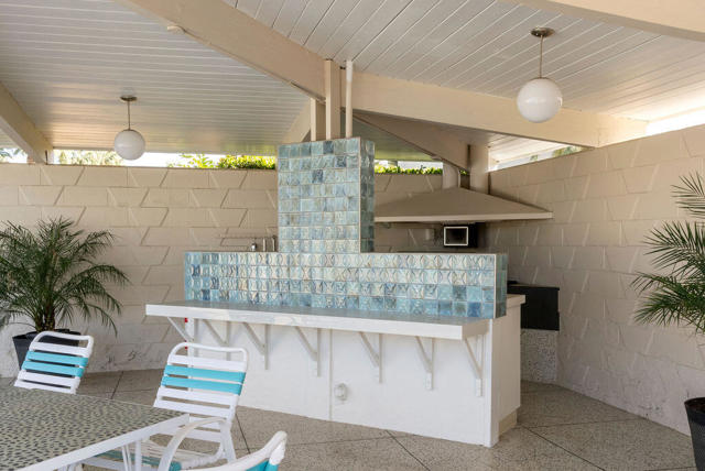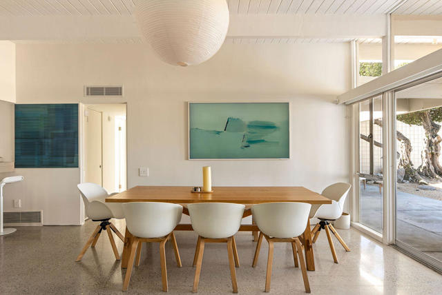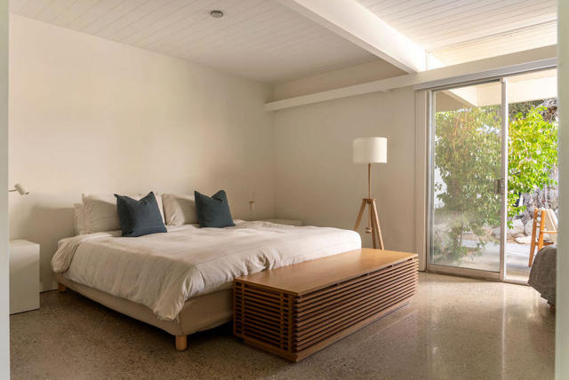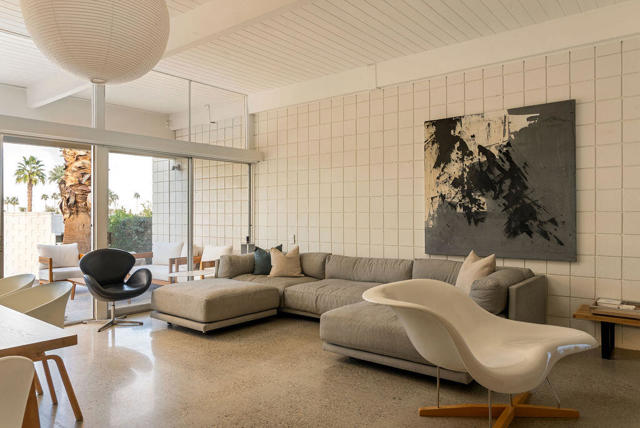 Located within the architecturally significant Sandpiper community, this four-bedroom, four-bath residence is a compelling example of midcentury modern design by renowned architects Palmer & Krisel, whose work is celebrated for clean lines, thoughtful proportions, and seamless indoor-outdoor living.The home has been comprehensively reimagined with a refined modern vision by design firm Nomos RED, thoughtfully blending original architectural intent with contemporary comfort. The detached casita has been extensively rebuilt, retaining only the original roof frame, while all mechanical, electrical, and plumbing systems, along with interior finishes, have been newly installed.The main residence has been selectively and intelligently upgraded throughout, featuring polished concrete flooring, an enhanced glass package, redesigned kitchen and baths, custom cabinetry, new blinds, new electrical and plumbing fixtures, new appliances, a new water heater, a new electrical panel, and a new main entry door. The existing furnace services the main house, while the casita benefits from its own new system. The interior and exterior have been freshly repainted, and the patio has been fully reimagined to support effortless indoor-outdoor living.An especially desirable characteristic within the community, the residence offers exceptional ceiling height, creating a sense of scale, volume, and natural light that is seldom found within Sandpiper. Further enhancing its appeal is a premium covered parking space located directly adjacent to the main entrance, complete with an installed EV charger, a valued convenience within the community.Generous living spaces, four well-proportioned bedrooms, and four bathrooms provide flexibility for full-time living, hosting, or retreat-style use. Ideally located within walking distance of downtown El Paseo, often referred to as the 'Rodeo Drive of the Desert,' the residence offers convenient access to shopping, dining, nearby hiking, and the surrounding desert lifestyle. This is a rare opportunity to own a carefully reimagined architectural residence that honors its midcentury legacy while delivering the ease, functionality, and comfort of modern living.