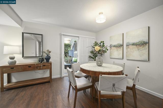 Welcome Home to Pleasant Hill! This spacious 3-bedroom, 2.5-bath townhome offers the ideal blend of comfort and convenience across two levels. Enter to discover a bright living room with soaring ceilings and a cozy fireplace—perfect for relaxing evenings. The welcoming kitchen features light wood cabinets, easy-care counters, and abundant storage, with a charming window overlooking a majestic old-growth oak tree in front. The dining area flows effortlessly onto your private back patio, creating an ideal space for indoor-outdoor entertaining. Upstairs, you'll find three inviting bedrooms, including a primary suite with a spacious walk-in closet and remodeled walk-in shower. One bedroom enjoys dramatic vaulted ceilings that add to the home's airy feel. The conveniently located second-level laundry closet makes daily tasks a breeze. Fresh updates throughout include new closet doors, plush new carpet, and crisp interior paint, while all bathrooms have been thoughtfully refreshed. Your attached two-car garage provides easy access and plenty of storage. The vibrant Tres Lagos North community enhances your lifestyle with pools, tennis courts, and a clubhouse. You'll love the walkability to shops and services. Freeway just blocks away. Close to D.V.C., bike trail and D.T. Pleasant Hill.