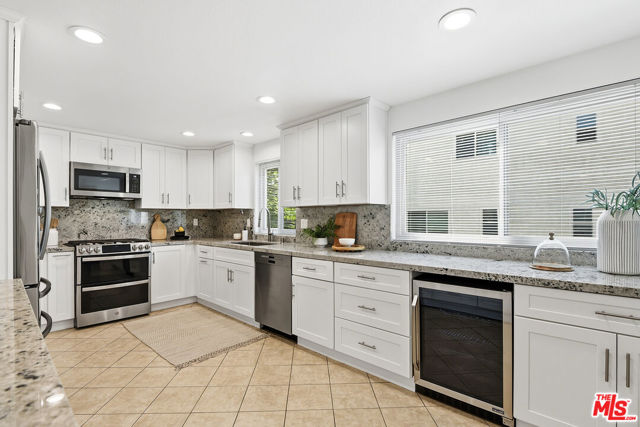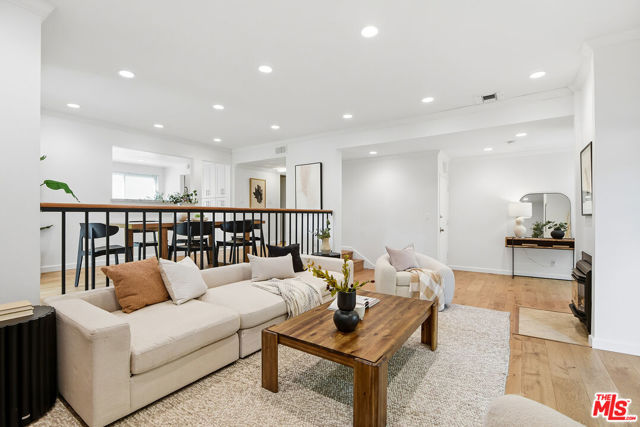 A rare 4-bedroom, 2.5-bath end unit townhome with a versatile 2 room bonus area. This unit offers hillside views in Culver City's prestigious Beverlywood West. With only one shared wall, this light-filled, renovated corner residence features high ceilings, recessed lighting, and beautiful white oak flooring throughout, creating a bright and inviting atmosphere. The spacious living room features a gas fireplace, and flows seamlessly into the formal dining area and renovated chef's eat-in kitchen, complete with custom shaker cabinetry, updated granite countertops and backsplash as well as a stainless-steel appliance suite including a wine fridge. An oversized enclosed private patio provides ideal indoor-outdoor living, while an additional balcony off the dining area adds another outdoor retreat. Abundant windows flood the home with natural light. Upstairs, the primary suite showcases vaulted ceilings, an en-suite bathroom and a Juliet balcony. Three additional well-sized bedrooms offer ample closet space and living options. Off your attached two car garage you'll find a finished two-room bonus space perfect for a combination of gym, play room, theater, or office. Additional highlights include a laundry room, central air and heat, tons of built in storage, and more! Enjoy the benefits of Culver City schools and services, with convenient access to downtown Culver City, local parks, and shopping. The HOA includes cable and internet, trash service, earthquake insurance, on-site security, guest parking, and resort-style amenities such as two pools, a jacuzzi, recreation room, playground, volleyball court, tennis courts, and basketball court.