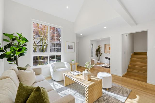 Fully updated with a modern flair, this turnkey home offers exceptional flexibility with two spacious primary suites, a dedicated first-floor office/den, and 2.5 bathrooms, perfectly suited for todays work-from-home lifestyle. New flooring throughout, fresh paint, and contemporary lighting create a polished, move-in-ready interior. The dramatic two-story vaulted ceiling in the living room enhances the bright, open ambiance, while the sun-filled kitchen supports both everyday living and entertaining. Sliding glass doors lead to a private backyard featuring a raised garden bed and generous patio-ideal for al fresco dining and relaxed gatherings. Recent upgrades include new central A/C, double-pane windows, and a new sliding glass door, ensuring comfort and energy efficiency year-round. Ideally located near LinkedIn, high-tech campuses, Caltrain, downtown, farmers markets, parks, and schools, with easy access to Central Expressway and major highways, this home offers the perfect balance of modern living and prime Silicon Valley convenience.