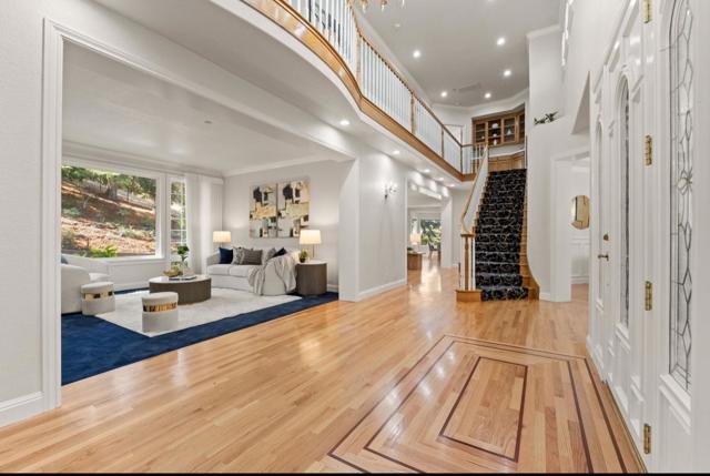 Welcome Home! Gorgeous And in demand area of Gilroy with the best schools! This stunning home is nestled on an 1.1 acre expansive lot that backs up to protected open land. Newly refinished real hardwood floors, high ceilings and a grand granite kitchen all flowing with natural light! Featuring five bedrooms, office, bonus room (could be used as additional bedrooms)- This home ensures comfort and luxury. Plenty of space to work from home and enjoy indoor and outdoor living. The well-appointed kitchen is equipped with modern amenities such as a gas cooktop, wine refrigerator, warming drawers, and a large island, making it perfect for culinary enthusiasts. Formal dining room and eat-in kitchen! Enjoy the comfort of central gas heating and air conditioning enhanced by ceiling fans and 3 cozy fireplaces. For entertainment and security, benefit from the built-in audio system and media closet. A separate utility room for extra storage and laundry. This home is ideal for those seeking ample space and privacy but conveniently located just minutes from shopping, restaurants, schools and downtown. Great commuter location. Near wineries, hiking trails, Gilroy Gardens, parks, golf courses and more! Check out this incredible garage, perfect for car enthusiasts. See it to believe it!