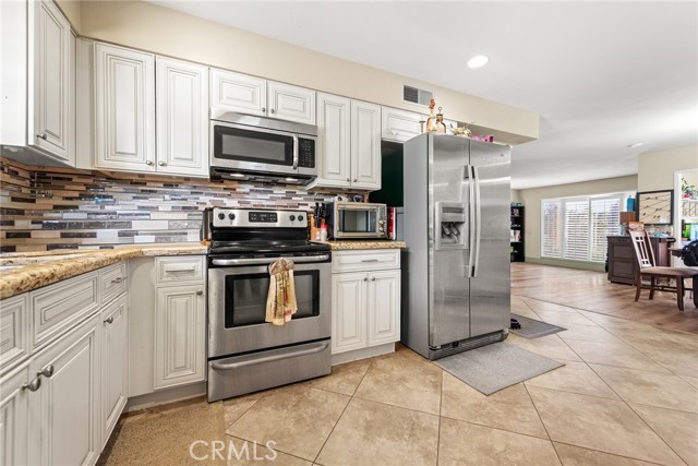 Located in the desirable 55+ community, this single-story home golf course home offers 3 bedrooms and 2 bathrooms with a comfortable, functional layout and generously sized rooms throughout. So beautiful and updated! The home features both a living room and separate family room, each with views of the backyard and golf course! creating multiple inviting spaces to relax and entertain. A separate laundry room adds everyday convenience. Nice natural lighting flows throughout the interior, adding to the bright and welcoming feel. Step outside to a spacious backyard that overlooks endless views of open greenery providing a peaceful scenic setting. The large lot offers plenty of room to enjoy outdoor living. A large garage includes extra space ideal for golf cart parking or additional storage. Conveniently located near shopping, dining, and easy freeway access, this property combines comfort and accessibility. Residents enjoy access to the Sun City Civic Association amenities, featuring a resort-like lifestyle with a fitness center, pools, spa, pickleball, horseshoes, lawn bowling, billiards, shuffleboard, meeting rooms, and a wide variety of social and recreational clubs and activities.
