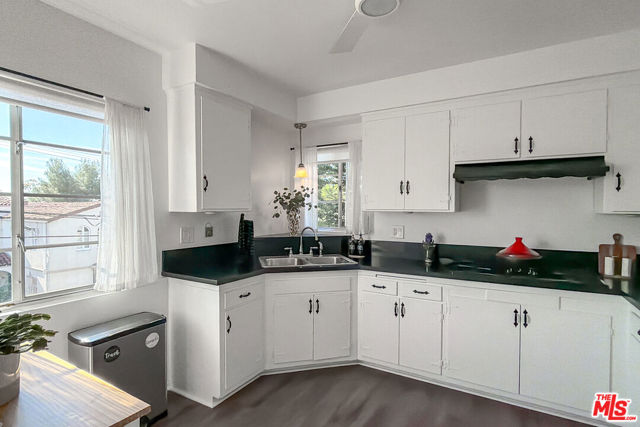 Welcome to 4507 Finley Ave #6 a top-floor Mid-Century gem with timeless style and modern ease. Built in 1957, the building's mix of brick, stucco, warm wood accents, and iconic ironwork sets the tone before you even step inside. This 1,090 sq ft residence is filled with natural light and anchored by a gas fireplace with a rich wood mantle. The layout flows beautifully, with generous storage in both bedrooms, the hallway, and a kitchen that keeps everything neatly in its place. Perched above it all, the south-facing unit enjoys open views and a bright, airy feel throughout the day. Down below, a lush, shaded courtyard offers a peaceful escape from the city buzz. Practical perks include two tandem garage parking spaces plus additional storage, making everyday living refreshingly easy. Set near Hillhurst and Finley, you're perfectly positioned to enjoy the best of Los Feliz from evenings at the Greek Theatre to weekends exploring Griffith Park. Downtown access and major routes are close, yet the neighborhood vibe stays calm and residential. Stylish, sunlit, and perfectly located, 4507 Finley Ave #6 is ready for its next chapter and its next owner. Come see it in person and fall in love.