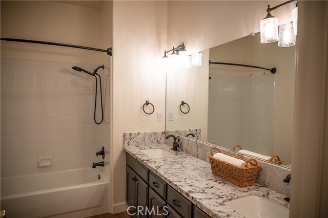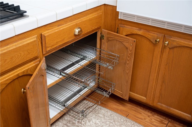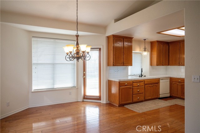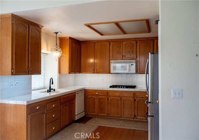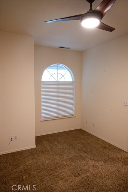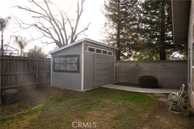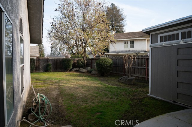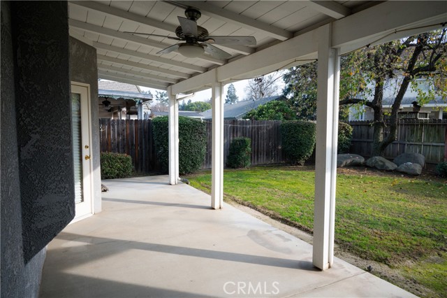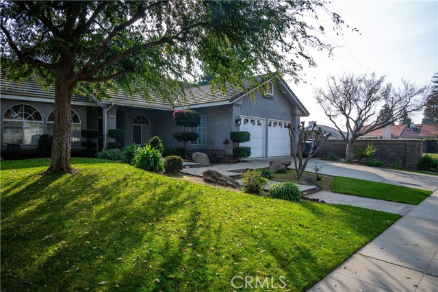 Spacious and well-cared for 4 bedroom 2 bath in highly desirable location, close to grammar school. The entry inside the home has tile floors, and the fourth bedroom ia located just off the enty way. The current owner has used it for an office, exercise room and viewing their TV enjoyment, instead of the 4th bedroom since they didn't need it as a fourth bedroom and there is no closet. The great room has a fireplace and is carpeted, and is located off the dining room and kitchen, which features beautiful wood floors, tiled counters, cabinets, which some have pull out shelves, gas counter top range, microwave, build in oven, pantry and refrigerator. All bedrooms have carpets, ceiling fans with lights. The laundry room has laminated flooring, cabinets above, and a door that leads to the garage. The garage is a two car garage, with two separate garage door openers, and a large cabinet for storage. The front and back yard has very nice mature landscaping , a shed for your extra storage and a large covered patio , with a ceiling fan.