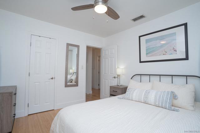 Welcome to the highly desirable Allied Gardens Community! This 3-bedroom, 2-bathroom home is 1,123 sq. ft. and located on a 9,800 sq. ft. corner lot. The expansive gated outdoor courtyard stands out first and foremost, offering amazing outdoor living. There is also a heated swimming pool with a spa, and a newer elevated wooden deck. Inside is an open living room, dining area, and a kitchen with an adjacent laundry room that all have tons of natural lighting. Other features include dual-pane windows, a gourmet kitchen with soft-close cabinets, stainless steel appliances, Quartz kitchen counters, original hardwood floors, tastefully remodeled bathrooms, and central air conditioning. In addition to the 14-panel owned solar system, this home not only has a 2-car detached garage, but also additional parking on the property. This home has a beautiful view of Mission Valley and easy access to the freeway.