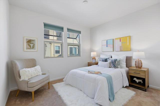 Immaculate, modern townhouse in the highly desirable Traverse Community of Milpitas. Built in 2017, this unit offers exceptional privacy, abundant natural light, and a highly sought-after floor plan. Features include an open-concept layout with high ceilings, fresh interior paint, and a gourmet kitchen with granite countertops, contemporary cabinets, stainless steel appliances, and recessed LED lighting. Spacious living room with extra windows, large primary suite with walk-in closet and dual vanities, custom-tiled bathrooms, indoor laundry, private patio, dual-zone central A/C and heating, ceiling fans, smart home media and security system, and 240V EV charger. Low HOA fees include trash removal, insurance, playgrounds, BBQ, and sitting areas. Prime location within walking distance to Milpitas BART, Mabel Mattos Elementary, Trader Joes, Great Mall, and upcoming shopping, with easy access to 880, 680, 237, and major tech hubs.