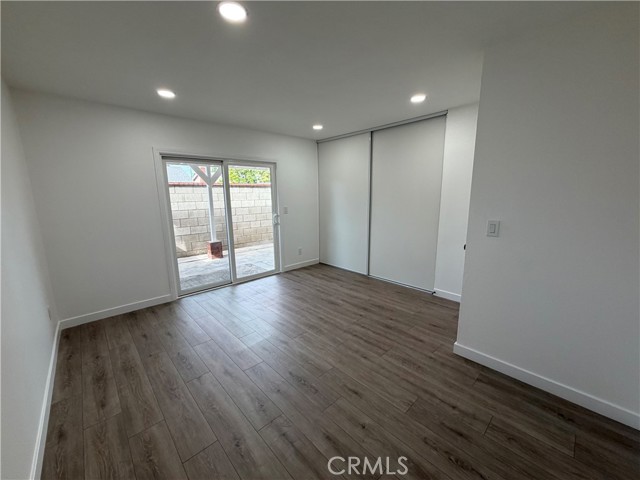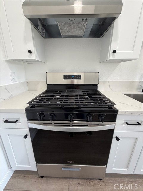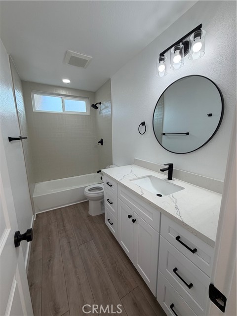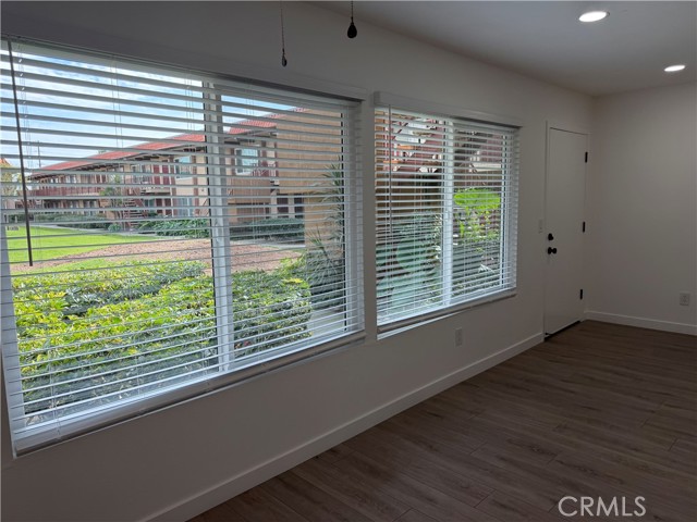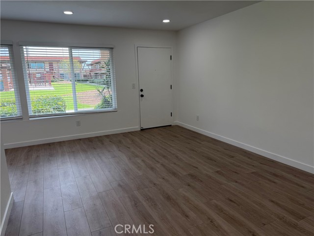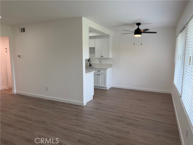 Charming, fully upgraded one-bedroom, one-bath lower-level unit with a private patio in the gated community of Bristol Place. This light and bright home has been completely renovated and freshly painted throughout. Upgrades include new laminate flooring and baseboards, dual-pane windows with blinds, glass sliding door, recessed lighting, a ceiling fan with remote, closet doors, and all new fixtures, outlets, and hardware. The updated kitchen features white shaker cabinets with soft-close doors and drawers, quartz countertops, a stainless-steel sink, gas range with hood and light, garbage disposal, and modern faucet—perfect for both everyday living and entertaining. The remodeled bathroom offers quartz countertops, a soaking tub, a new vanity with soft-close doors and drawers, updated shower fixtures, a single-flush toilet, new lighting, and a medicine cabinet. The unit includes one assigned carport space plus one additional unassigned parking space. Community amenities include a pool, laundry room, and outdoor cooking area with picnic tables. Conveniently located near shopping, public transportation, and easy freeway access.