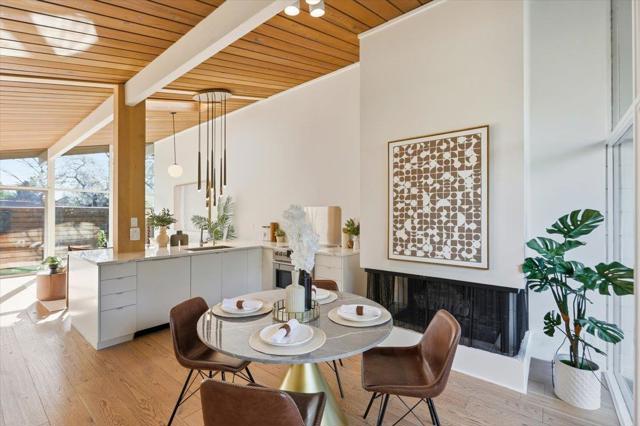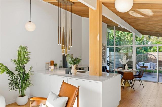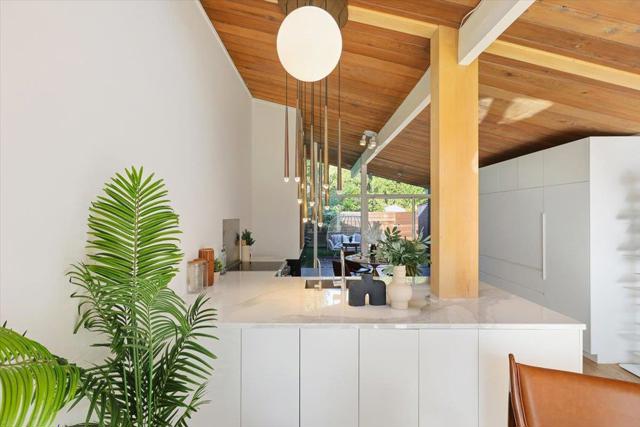 HOA covers nearly everythingincluding whole-house radiant heating, heat, hot water, gas, water, trash, roof care, and pool maintenanceoffering truly low-maintenance living with minimal utility costs. This beautifully reimagined home features sun-filled interiors with tongue-and-groove ceilings, exposed beams, and dramatic floor-to-ceiling glass walls that flood the space with natural light. The kitchen is upgraded with a custom built-in refrigerator and freezer, an induction cooktop, and refined finishes, while bathrooms showcase Porcelanosa tile and premium GROHE fixtures for a spa-like feel. Step into a landscaped outdoor setting perfect for relaxing or entertaining, and enjoy being just a few steps from the poolso close it feels like your own private backyard retreat. All of this is located within a highly sought-after school district, blending timeless design with effortless everyday living.