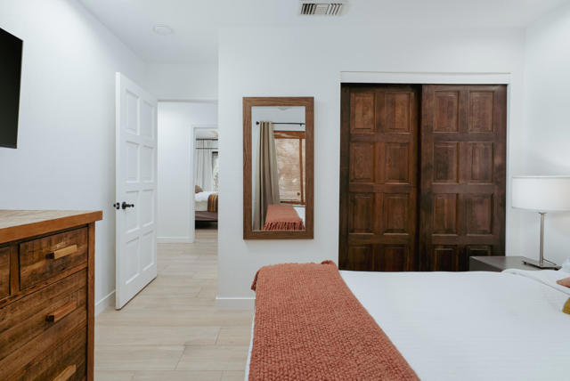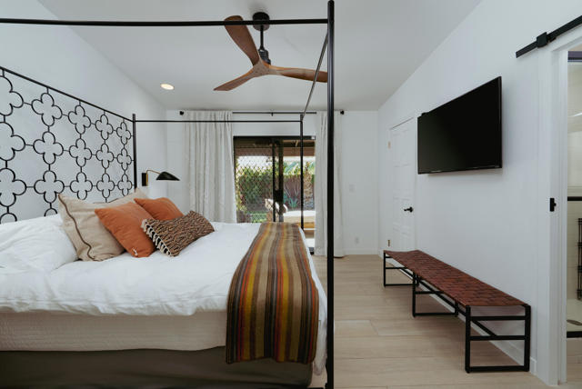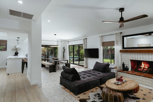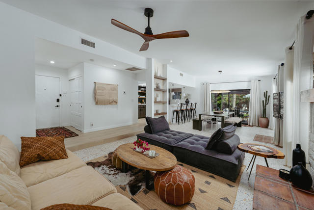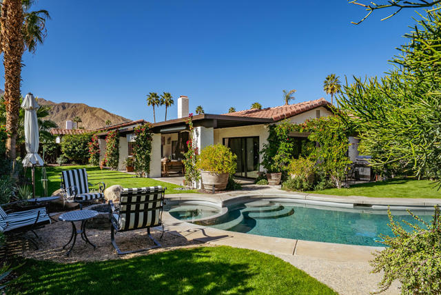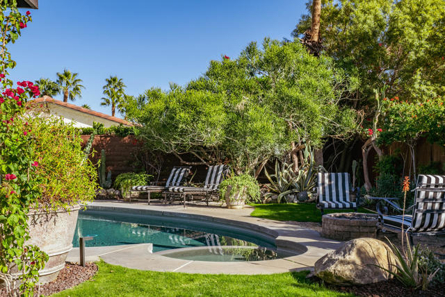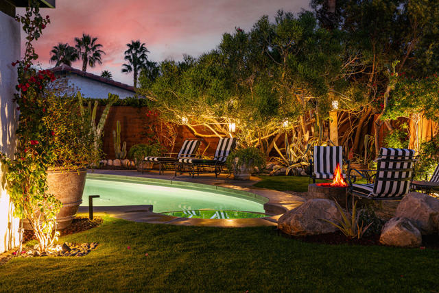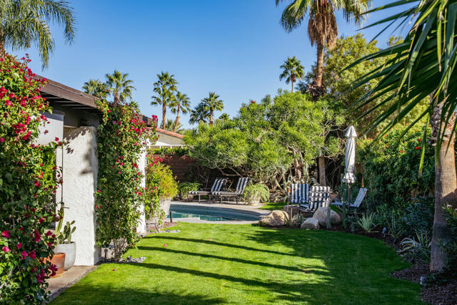 Set on a quiet cul-de-sac just minutes from the heart of downtown Palm Springs, this incredibly charming home offers an exceptional blend of privacy and beauty, with thoughtfully curated interiors and a lush, resort-style backyard with mountain views.The outdoor spaces are beautifully designed and feel like a boutique resort, featuring a newly resurfaced pool, new concrete flatwork, a broad covered patio with multiple seating areas, a charming firepit, and a built-in BBQ--ideal for entertaining or relaxing with friends day or night. Layered, mature landscaping creates a sense of privacy and serenity while framing the lovely mountain views.The home is being sold TURNKEY FURNISHED, delivering an exceptional living experience from day one that is rarely matched at this price point. Inside, the residence is warm, inviting, and full of character, with a fantastic living room and many tasteful upgrades throughout. Whether envisioned as a private desert retreat or a high-performing short-term rental, the home's design and livability make it exceptionally versatile.Other features and upgrades include a thoughtfully updated kitchen with new countertops and backsplash, color-coordinated electrical outlets, refrigerator, stovetop, microwave, and dishwasher. Additional improvements throughout the home include updated flooring, upgraded bathroom fixtures and glass, LED recessed lighting throughout, and a new electrical panel. Outdoor upgrades are equally impressive, with complete pebbled pool resurfacing, a new pool deck, pool heater, WiFi-enabled pool controls, and exceptionally lush, mature landscaping featuring cactus, rosemary, aloe, agave, bougainvillea, and honeysuckle.Additional highlights include FEE LAND ownership (you own the land), no HOA, and a three-car garage with one bay converted into secure, locked private storage--ideal for owner use when operating as a vacation rental or simply as generous long-term storage. With views more commonly found in homes priced twice as high, this property represents an outstanding opportunity in a desirable Palm Springs location close to town yet tucked away in a peaceful setting.