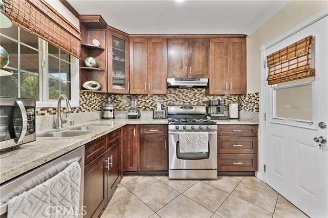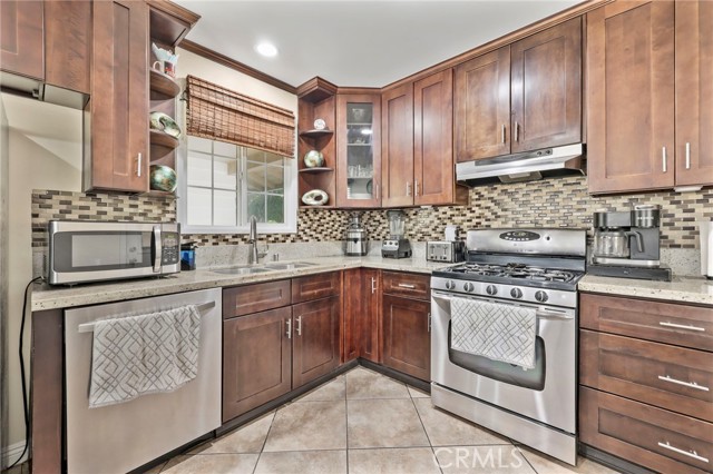 Welcome to 14641 Lassalette St in La Puente! This beautifully upgraded 3-bedroom, 2-bath home shines with pride of ownership and modern finishes throughout. Enjoy laminate flooring, recessed lighting, and elegant crown molding, plus a fully remodeled kitchen featuring custom cabinetry, tile floors, granite countertops, and a stylish backsplash. The open layout flows seamlessly into spacious bedrooms and completely renovated bathrooms. Recent improvements include a newer water line and copper plumbing in the kitchen and baths. Step outside to large front and backyards, perfect for kids, pets, and entertaining, with an open patio, fruit trees, and newer concrete in the backyard and driveway. Finished with a newer garage door, this home is tucked in a quiet, desirable neighborhood close to schools, parks, and shopping. A must-see gem!