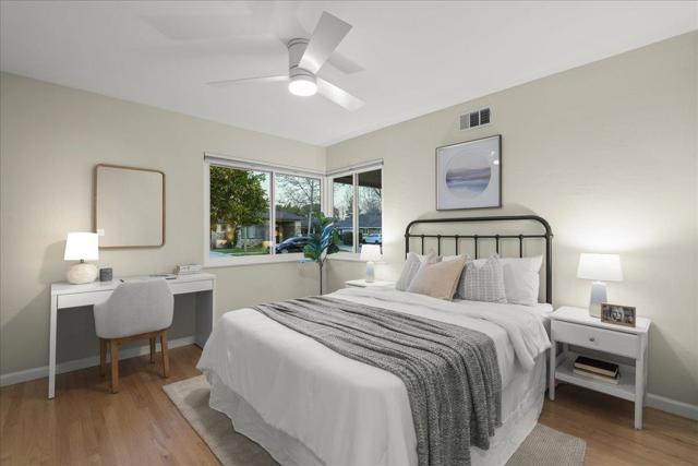 Coveted Willow Glen living in the heart of the highly sought-after Booksin Elementary School neighborhood. This beautifully updated single-level home sits on an expansive 10,010 sq.ft. lot, just a short walk to downtown Willow Glen shops, dining, and parks. Offering 1,986 sq.ft. of living space, 4 bedrooms plus a den/office perfect to utilize for remote work, 2-car attached garage 400 sq.ft., and an impressive 664 sq.ft. workshop, this property blends comfort, function, and flexibility. Light-filled formal entry, hardwood floors, recessed lighting, and a warm living room with wood-burning fireplace with tile hearth create an inviting atmosphere. The remodeled 2025 kitchen features granite countertops, white shaker cabinetry with soft-close drawers, chevron tile backsplash, new tile floors, and premium GE Profile appliances. Spacious laundry room also updated in 2025 with folding station, cabinetry, and exterior access. Recent seller upgrades include new interior paint and new appliances 2025. New A/C, water heater, lighting, refinished floors, EV-ready 240v outlet, finished and insulated garage in 2023. Enjoy a covered patio, dining and lounge area, mature orange tree, and private backyard retreat.A rare opportunity in one of Willow Glens most desirable locations.