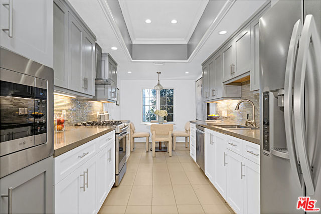 Welcome to this beautiful condominium, thoughtfully designed for a lifestyle of comfort and sophistication, ideally located in the heart of Westwood. A double-door entry sets the tone as you step into a bright, open-concept layout that flows seamlessly between the living and dining areas, perfect for both everyday living and entertaining. Floor-to-ceiling windows bathe the space in natural light, while a cozy fireplace and built-in bar add warmth and character. Enjoy indoor-outdoor living with a private balcony accessible from both the living room and kitchen, ideal for morning coffee or evening relaxation. The breakfast nook is perfect for casual meals, while the formal dining area provides an inviting setting for intimate dinners or elegant gatherings. The primary suite is a true retreat, featuring two walk-in closets and a luxurious marble en-suite bathroom with a spa-style shower and separate soaking tub. The spacious second bedroom also offers an updated full en-suite bathroom, providing comfort and privacy for guests or family. Additional highlights include a guest powder room, in-unit side-by-side laundry, central HVAC, and two secured side-by-side gated parking spaces, along with ample guest parking. Large pride storage in the lower level. The HOA covers earthquake insurance, building maintenance, water, and trash. All of this is located within a well-maintained building, just moments from UCLA, Westwood Village, and Century City offering the best of Westside living.