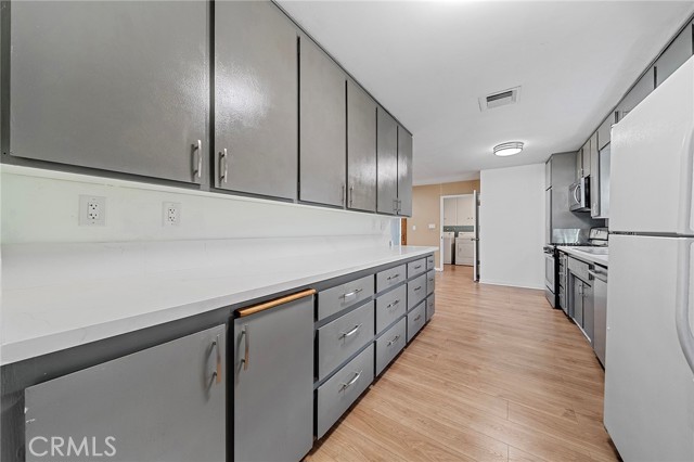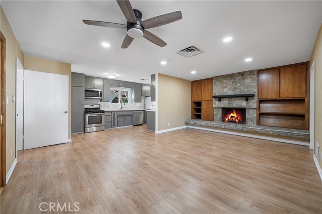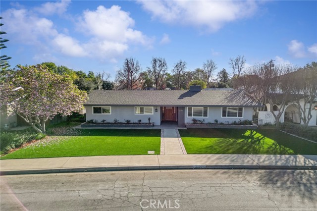 Located in the heart of Old Town La Verne, this 3-bedroom, 2.5-bathroom residence offers approximately 1,962 square feet of living space and showcases classic mid-century architecture with modern updates throughout. The home features a detached two-car garage with a bonus room connected by a breezeway. The bonus room includes a vanity with sink and a closet and may be used as a potential fourth bedroom, guest room, or office. An additional carport with an automatic gate is accessible from the alley. The front yard is landscaped with low-maintenance artificial turf, while the backyard offers a deck and gazebo, providing multiple outdoor living and entertaining areas. Interior features include quartz countertops in the kitchen and bathrooms, luxury vinyl plank flooring, and an office nook with built-in cabinetry. The formal dining area is highlighted by a stone fireplace with built-in shelving and mantle. Sliding glass doors open from the dining and kitchen area to the backyard, enhancing indoor-outdoor living. The primary bedroom includes sliding glass doors, a walk-in closet, and exterior access. A dedicated laundry room is located in the service porch. Centrally located with Las Flores Park and Roynon Elementary directly across the street, the property is extremely walkable also with easy access to Bonita High and nearby shopping and dining in Old Town La Verne.