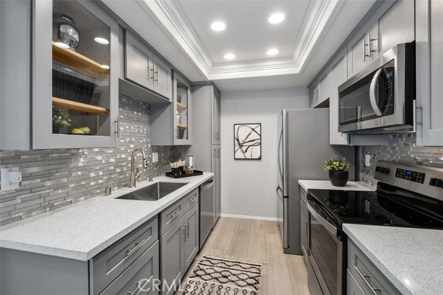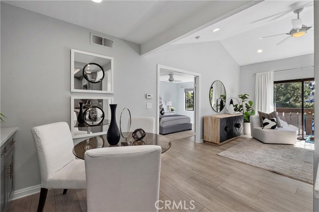 Set within the resort-style community of Harbor Creek, this thoughtfully updated Dana Point condo offers a relaxed coastal lifestyle just moments from the shoreline. Meandering streams, mature landscaping, and peaceful walkways create a setting that feels both serene and inviting, blending the ease of beach living with the calm of a private retreat. The one-bedroom, one-bath residence is ideally located near Doheny Beach, scenic bike trails, local restaurants, and everyday conveniences, with easy access to the 5 freeway for effortless travel along the coast. It’s a rare combination of charm, location, and accessibility in one of Dana Point’s most quietly treasured neighborhoods. Inside, the home features a light-filled, open layout with vaulted ceilings in the living room and a design that prioritizes comfort and functionality. The kitchen is well-appointed with soft-close gray cabinetry, Cambria quartz countertops that extend into the dining area, and a custom tile backsplash. Stainless steel appliances, pull-out storage, and display cabinetry with integrated lighting add both practicality and polish. Neutral luxury vinyl flooring runs throughout the home, paired with updated fixtures and hardware for a clean, cohesive aesthetic. The primary bedroom is set behind double doors, offering a sense of separation and privacy, while the bathroom reflects the same modern, understated design found throughout the space. A private balcony provides an inviting outdoor extension, ideal for morning coffee, fresh coastal air, or quiet evenings at home. The balcony also includes a convenient laundry closet with added shelving for organized storage. Residents enjoy access to a pool and spa, along with private gated entry to the San Juan Creek Trail, which leads directly to Doheny Beach. The well-managed HOA covers water and trash, and the community has been fully repiped. The home includes an assigned covered carport, ample guest parking, and a pet-friendly environment with designated dog walk areas. With Dana Point continuing to evolve through thoughtful harbor improvements and the vibrant energy of the Lantern District, this home offers an opportunity to enjoy coastal living that feels grounded, livable, and enduring. From beach days and trail rides to paddle boarding and sunset strolls, this is a place to settle in and savor the rhythm of life by the sea.