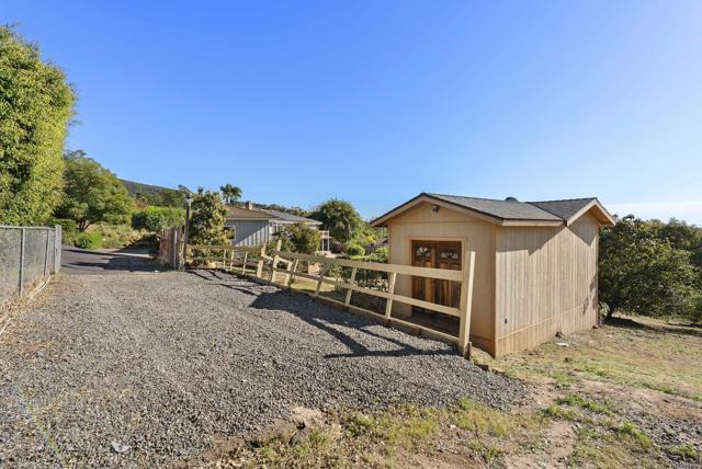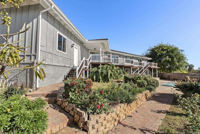 Perched on an elevated lot with sweeping ocean views, this distinctive property offers a rare combination of privacy, usable land, and flexible living options. Expansive views across rolling hillsides and the ocean create an open, coastal-meets-country atmosphere that feels both serene and connected. The home is thoughtfully positioned on a large, versatile lot with multiple outdoor areas—including decks, patios, and garden paths—designed for seamless indoor-outdoor living. Mature landscaping and established fruit trees add privacy, character, and natural beauty throughout the property. An existing ADU provides additional living or functional space, ideal for guests, extended family, or rental income, with the lot size and layout offering potential to add a second ADU. A substantial detached shed/workshop with power and built-in shelving offers excellent space for storage, hobbies, or creative use. Ample parking includes a dedicated RV space, easily accommodating recreational vehicles, trailers, or additional cars. The grounds feature open, usable areas well suited for gardening, small-scale cultivation, or outdoor recreation, with fenced areas and raised beds already in place. With ocean views, a spacious and usable lot, ADU flexibility, RV parking, and expansive outdoor living space, this property presents a unique opportunity for buyers seeking versatility, privacy, and long-term potential in a truly special setting.