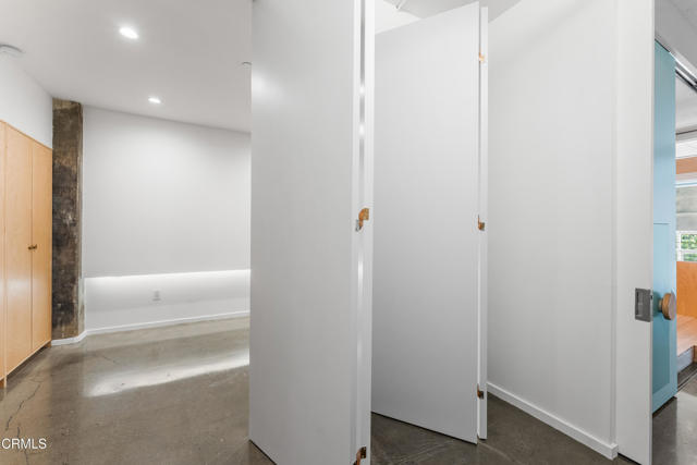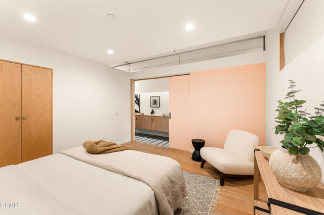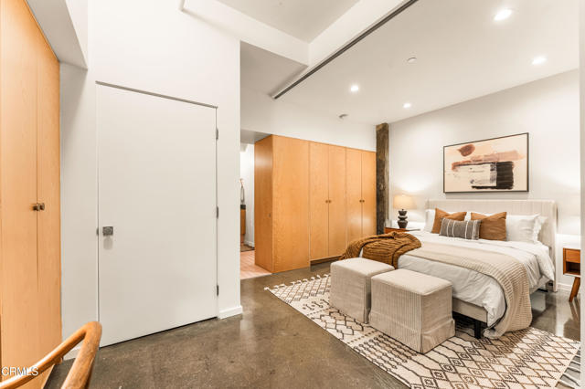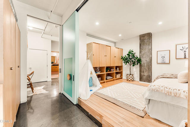 Originally designed as an open loft, this residence has been thoughtfully transformed into four distinct rooms with sleek sliding doors, blending architectural character with functional privacy. The redesign preserves the expansive volume and modern aesthetic of a true loft while creating defined spaces ideal for bedrooms, a home office, guest quarters, or a media room -- a rare configuration in this setting. The sliding door system allows for flexibility and flow, offering openness when desired and separation for comfort and quiet when needed. This presents a unique opportunity for a family to enjoy modern loft living in the heart of the city -- without sacrificing enclosed bedrooms and everyday practicality. A resort-style rooftop crowns the building, featuring a heated pool and spa, cabanas, BBQ areas, fire pits, a fully equipped fitness center, and breathtaking 360-degree skyline views -- an elevated extension of sophisticated urban living. Gated garage parking and 24/7 on-site security provide convenience and peace of mind. Step outside to experience the best of the Arts District, including Bavel, Girl & the Goat, Manuela, Verve, Blue Bottle, Hauser & Wirth, SoHo Warehouse, and more. With effortless access to Metro, train stations, and major freeways, this prime location offers the perfect balance of vibrant city energy and everyday ease.