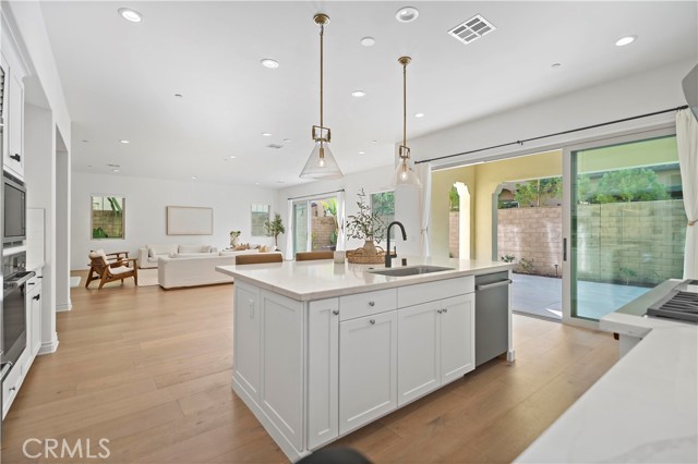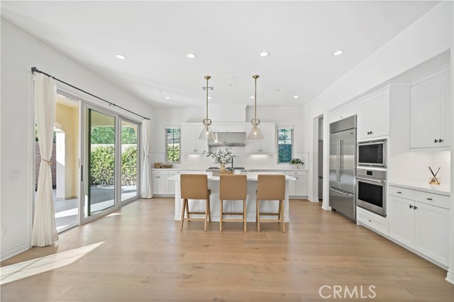 Located in the prestigious 24-hour guard-gated Orchard Hills the Groves, this prime corner-lot home offers 4,075 sqft with 4 bedrooms and 4.5 bathrooms. The second-floor loft offers flexibility and can be upgraded to a home office or fifth bedroom with closet. The home features luxury engineered hardwood flooring throughout, a spacious living room with fireplace, and large sliding doors for seamless indoor-outdoor living. The chef’s kitchen is equipped with WOLF and SUB-ZERO appliances, plus a separate prep kitchen with extra appliances and oversized pantry. The luxurious primary suite is nearly double the size of secondary bedrooms and offers peaceful trail views. All the bedrooms have en-suite bathrooms, including one bedroom on the first floor. Enjoy a decent-sized backyard finished with Italian porcelain tile and a California Room large enough for a 10-seat dining table, perfect for Southern California outdoor living. Additional highlights include paid-off solar, EcoWater softener, Tesla EV charger, and PHYN smart water monitoring system. Community amenities include a clubhouse, two pools, spa, tennis and basketball courts, playgrounds, and scenic hiking trails.