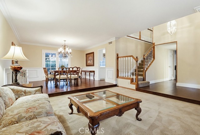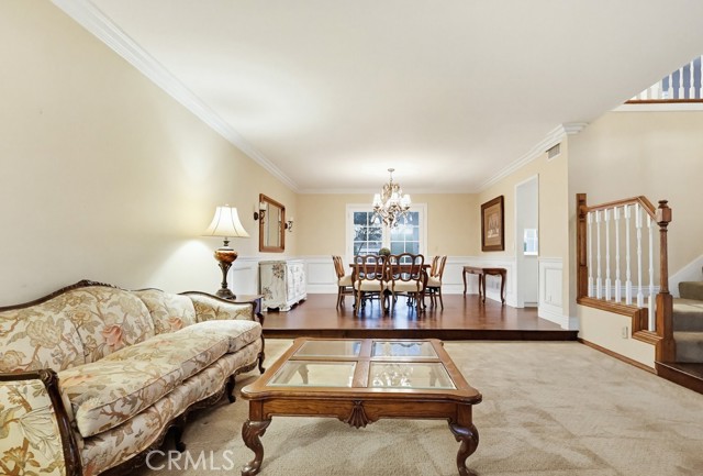 Inside, the home features a thoughtfully designed layout including a sunken family room, formal dining area, sunroom, and expansive living spaces ideal for both everyday living and entertaining. Plantation shutters throughout the home, including the sunroom, provide style and privacy, while crown molding throughout the downstairs living areas and in the primary bedroom adds architectural character.