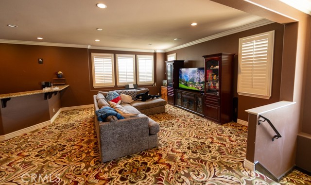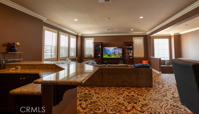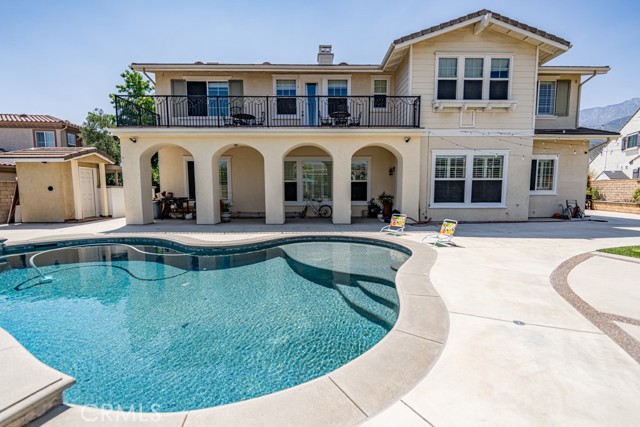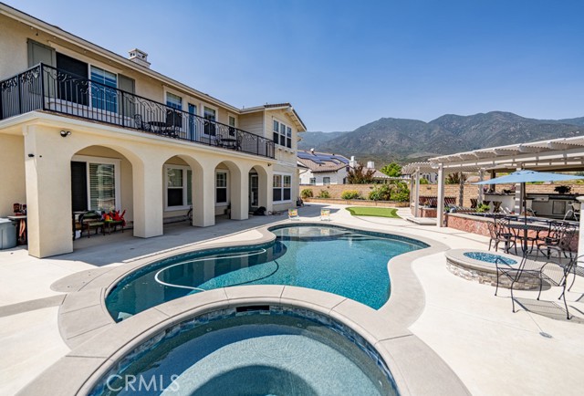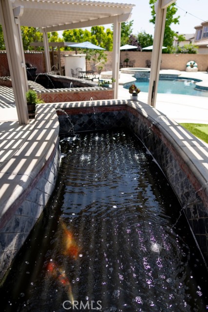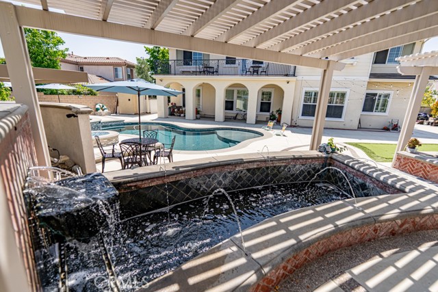 This Stunning Residence offers an Expansive Features throughout the house. Approx. 10” high ceiling of Luxurious Living space, plus an attached Independent Casita/Guest Suite ideal as 6 bedrooms perfect for in-laws or extended guests. This Exceptional Property offers the Perfect Blend of Elegance, Comfort and Resort-style Living truly a Private Oasis in one of the most Sought-after Communities. Showcasing Extensive and Tasteful Upgrades throughout, this home features an oversized RV parking area and a grand well-designed layout . At the heart of the Home is a Chef's Dream Kitchen, the entertaining home includes 3 Decorative Fireplaces A downstairs Ensuite Bedroom offers convenience and privacy for guests. Throughout the home, you’ll find Premium Finishes. Upstairs Primary Suite is a True Retreat, featuring a cozy fireplace, and a massive walk-in closet complete with a center island. The Suite also includes a convenient laundry area with stackable W/D hookups and a built-in ironing board. Recently added at the Master Suite a Spacious Balcony with breathtaking view, also find three additional ensuite bedrooms and a large bonus/game room with a wet bar and a spectacular picture window. The Resort-style backyard is an entertainer’s paradise. Additional features include a 2 huge tranquil koi pond with a water fountain, an outdoor shower and powder bath, a custom artificial turf putting green, designed to replicate the look and feel of a golf course green while offering low-maintenance outdoor enjoyment, a new long concrete side with brand new iron gate with dual access for extra parking or RV use, ready wired for hot summer days with water mist. Don't miss this one time opportunity on this lower price on the market for a 6 bedrooms 6 bath and almost 5800 SQFT, recently added pool, spa, BBQ center, possible RV, Solar System plus more.