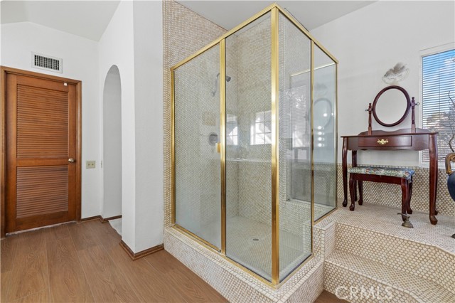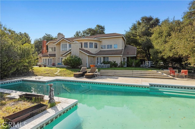 A former designer model home showcasing rare custom craftsmanship. This residence sits on an exceptionally hard-to-find, .97-acre lot within the coveted Crystal Springs Ranch. Offered in its current condition, it presents a premier opportunity to refine, enhance, or fully reimagine. With architectural details seldom found in today’s construction, the estate invites the next owner to modernize while preserving its timeless character and enduring artistry. Some architectural and custom highlights include a Grand Entry with a sweeping curved staircase framed by a series of custom stained-glass windows. A Private Library which is a dedicated quiet workspace or cozy retreat featuring French doors and hand-carved wood-mantel fireplace. The Custom Kitchen with classic wood cabinetry anchored by a handcrafted, antique-style brick masonry archway over the range, creating a timeless rustic centerpiece. A Formal Dining Room designed for hosting with a custom wood-inlay tray ceiling, custom woodwork, and large bay windows. The Executive Wet Bar is a full-scale entertaining hub featuring mirrored gallery shelving, glass-front cabinetry, and custom millwork. There are Four distinctive fireplaces accented by hand-carved wood mantels. All bedrooms have full en-suite bathrooms. The Resort-Sized Pool is an expansive pool area designed with a swim-up bar with in-pool seating with an oversized spa designed for entertaining. The Legacy Craftsmanship: As a former model home which features upgraded designer details, including vaulted ceilings, arched doorways, intricate woodwork, and custom stained-glass windows. The property is being offered in its present “as-is” condition, presenting a rare opportunity giving a buyer the chance to honor its high-end custom craftsmanship while tailoring the home to their own vision..