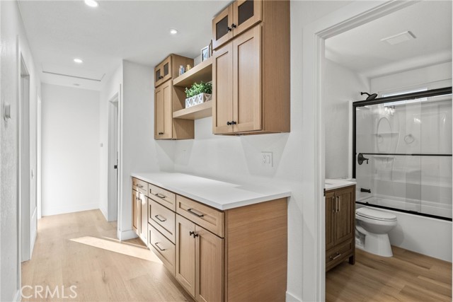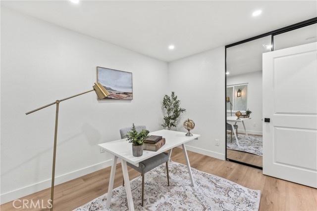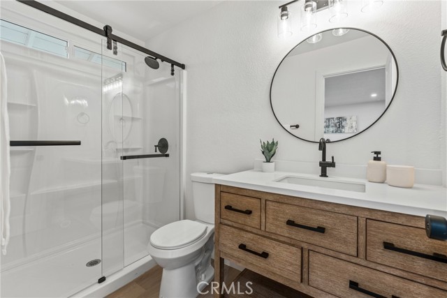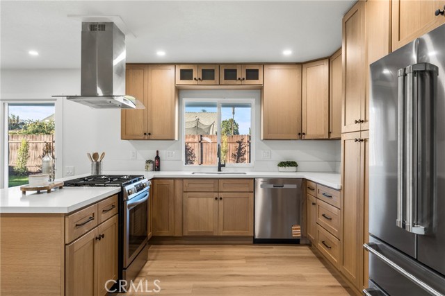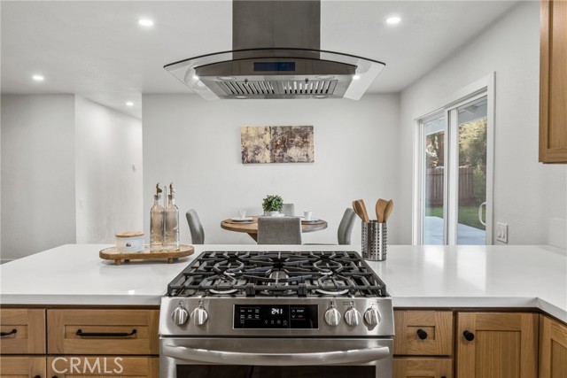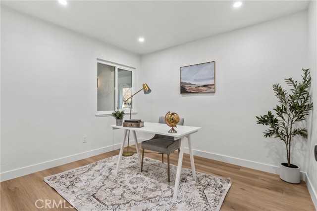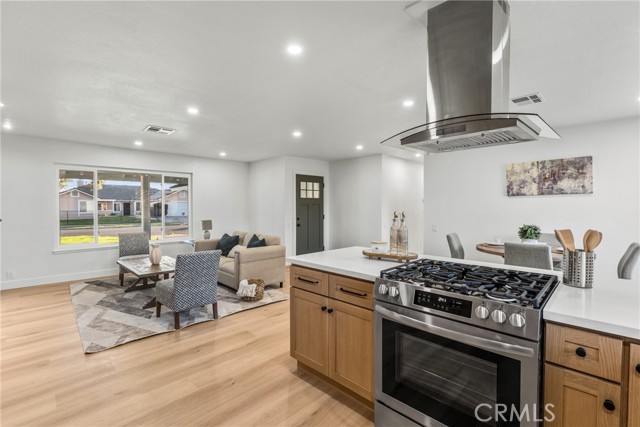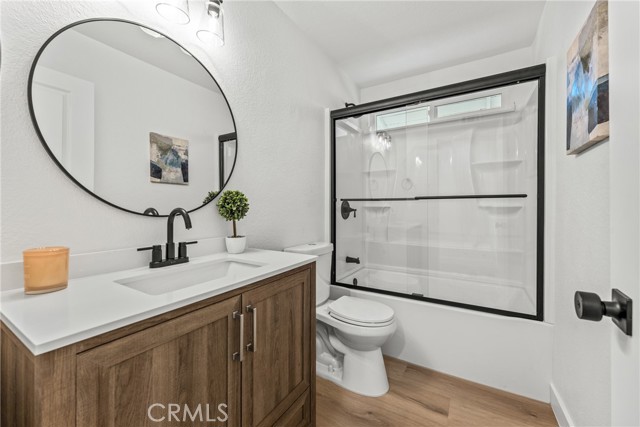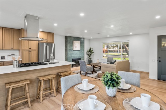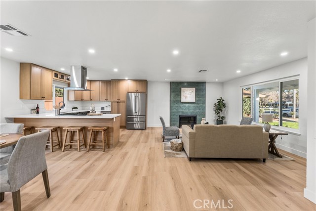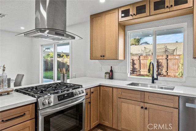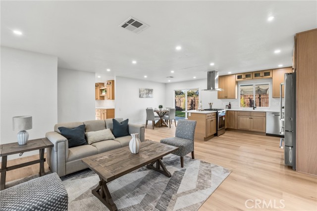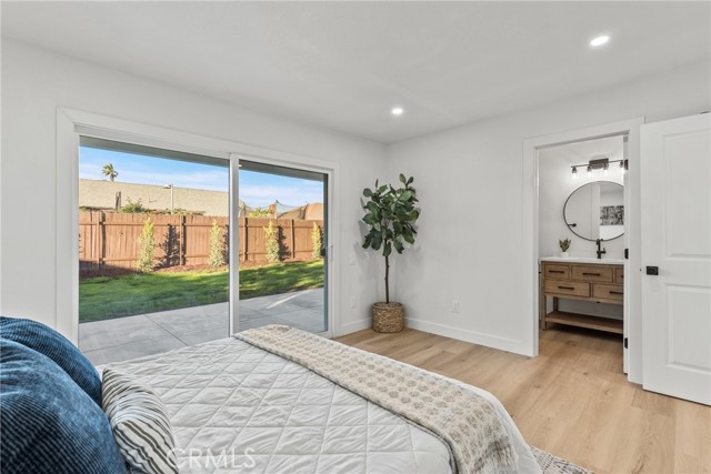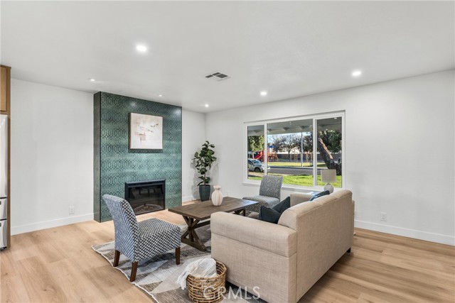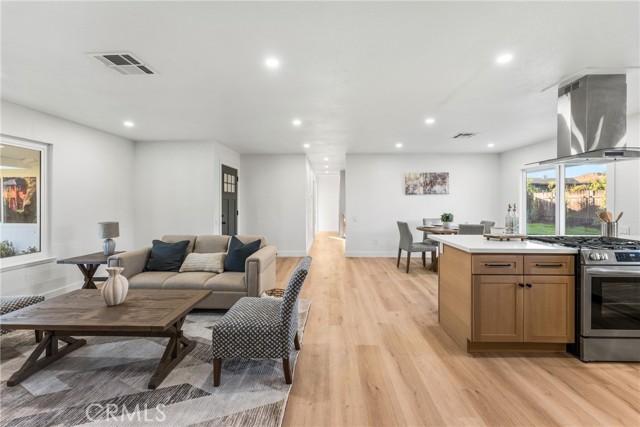 Welcome to this beautifully renovated, turn-key single-level home in the heart of Moreno Valley, where modern design meets everyday comfort. As you step inside, the open and airy living room immediately welcomes you with recessed lighting, an energy-efficient electric fireplace with elegant tile, and wide-plank wood vinyl flooring that flows seamlessly throughout the home; creating a warm, cohesive feel perfect for both relaxing and entertaining. The living space opens effortlessly into the stunning kitchen, designed with both style and function in mind. Enjoy quartz countertops, wood shaker cabinetry, a gas stove, and brand-new stainless steel appliances that are all included. The open layout makes hosting gatherings or keeping an eye on family activities easy and enjoyable. Both bathrooms are thoughtfully updated, featuring beautiful wood vanities, glass shower doors, sleek modern mirrors, and stylish finishes. The primary bathroom boasts a walk-in shower, offering a clean, contemporary look with everyday luxury. The bedrooms are light, comfortable, and well-appointed, each featuring mirrored closet doors that enhance brightness and space. The primary bedroom is a true retreat, complete with a sliding glass door leading directly to the backyard, perfect for morning coffee or quiet evenings outdoors. Outside, the home shines just as brightly with its fresh white exterior, wooden fencing, and ficus trees providing added privacy. The property offers a 3 car garage, a large driveway with RV access, and ample space for vehicles, storage, or toys. Adding to the appeal, Bay Side Park is located directly across the street, offering a wonderful extension to your lifestyle. This home is truly move-in ready, thoughtfully upgraded, and perfectly located, an exceptional opportunity you won’t want to miss.