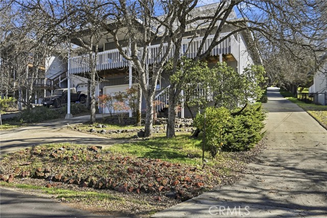 Access the upper level via interior stairs or the convenient side concrete driveway leading to a two-car garage.
