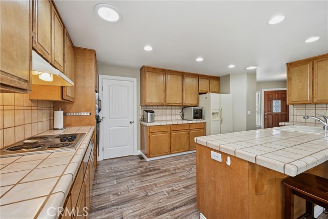 Open floor plan kitchen with abundant cabinetry and a walk-in pantry, perfect for culinary enthusiasts.