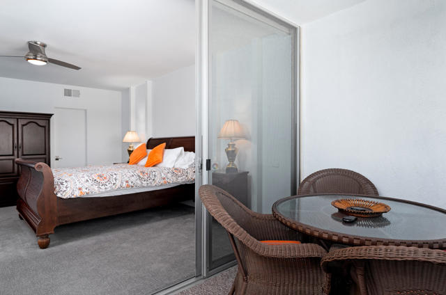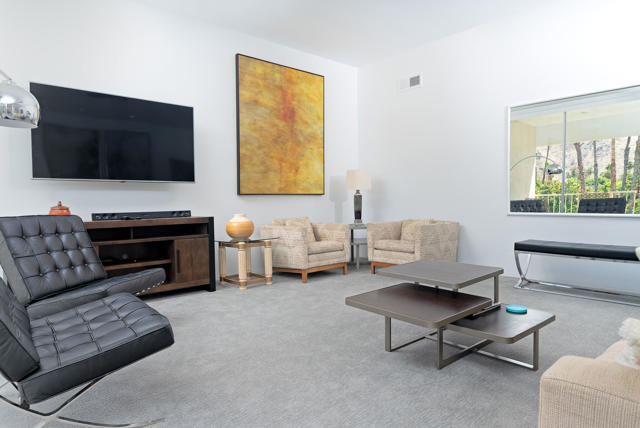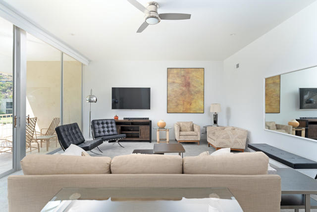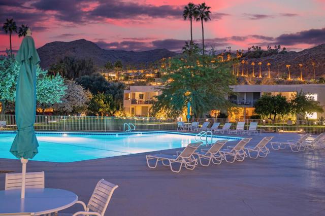 Set against iconic Palm Springs vistas, this top-floor two-bedroom, two-bath residence is located within the prestigious Seven Lakes Golf & Country Club--often celebrated as the ''Gem of the Desert.'' Overlooking the community's largest pool and spa, the home offers a front-row seat to resort living, with weekly water aerobics just steps away, as well as convenient access to the nearby tennis and pickleball courts. Built in 1972 and situated in the most recently developed phase of Seven Lakes, Phase 9, the residence is filled with natural light and architectural character. Ten-foot ceilings, skylights throughout, generous walk-in closets, and sweeping panoramic mountain views in all directions create a sense of openness and serenity. A private two-car garage, new HVAC system, modern, renovated bathrooms, along with dual-pane windows along the expansive rear terrace--spanning the full length of the home--add comfort and modern efficiency. Residents enjoy access to 15 heated pools and spas, an 18-hole Ted Robinson-designed golf course framed by dramatic mountain scenery, full-size tennis and pickleball courts, and the iconic William Cody-designed clubhouse, a storied gathering place for dignitaries and Hollywood legends alike. Seven Lakes offers 24-hour guard-gated security, an on-site HOA office, and electric vehicle charging, delivering a refined desert lifestyle with exceptional amenities.