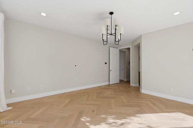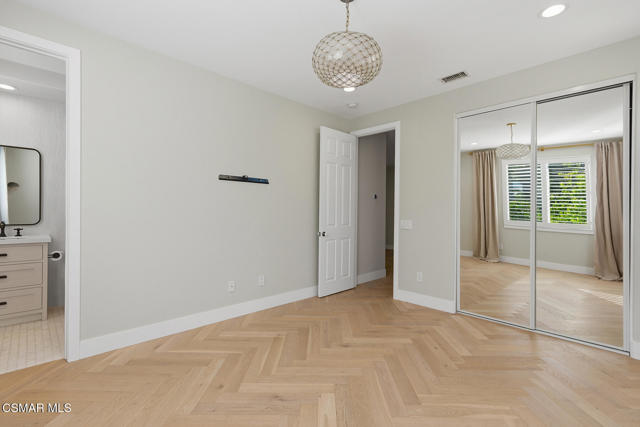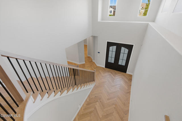 Tucked away on a quiet cul-de-sac in the gated Cantara community of Moorpark, 4630 Rio Bravo offers a thoughtfully updated home blending timeless design with modern comfort. Spanning approximately 3,307 sq ft, the residence features French oak flooring in a herringbone pattern, custom millwork, built-ins, and abundant natural light. The flexible floor plan includes 4 bedrooms and 4.5 bathrooms, highlighted by a main-level primary suite with a spa-inspired bath, soaking tub, walk-in shower, and custom walk-in closet. A downstairs guest suite is ideal for visitors or a home office, while upstairs offers two additional en-suite bedrooms and a spacious bonus room. The kitchen serves as the heart of the home with custom cabinetry, premium appliances, generous prep space, and seamless flow to the living and dining areas. Dramatic lighting, custom fireplace surrounds, and a striking staircase add architectural character throughout. The private backyard features paver hardscape and a smart patio cover, creating an inviting space for outdoor dining and year-round enjoyment. Ideally located near parks, shopping, dining, and top Moorpark schools, this home offers custom-quality finishes, a versatile layout, and an exceptional setting.