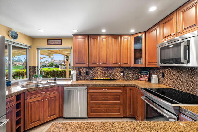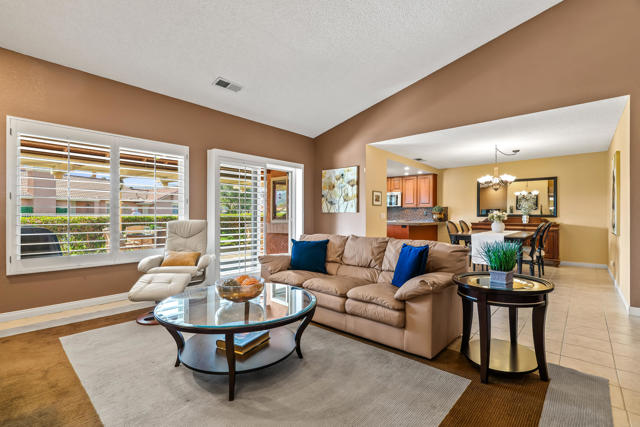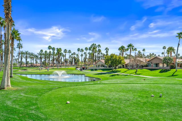 Welcome to Oasis Country Club, where this beautifully updated condo is ideally located on the 8th tee box in one of the most welcoming and socially active communities in the Coachella Valley.This beautifully updated two-bedroom, two-bath residence is ideally positioned to capture sweeping golf course views, mountain backdrops, and the tranquil sights and sounds of flowing waterfalls.The home is furnished and move-in ready and thoughtfully upgraded, featuring granite countertops, quality Electrolux appliances, and vaulted ceilings in the living area that create an open, inviting atmosphere. A fireplace anchors the main living space, complemented by a built-in bar and dedicated wine bar area--perfect for entertaining and effortless hosting with friends and guests.Indoor living flows seamlessly to a spacious, tiled patio with an overhang, offering an ideal setting to relax, dine, or enjoy the golfers, mountain views, and surrounding water features. Additional highlights include updated walk-in showers, a charming private courtyard, and a garage with built in cabinets. Guest parking is conveniently located nearby, making gatherings easy and accessible.Oasis Country Club offers an impressive range of amenities, including 18 pools and spas, a challenging yet enjoyable golf course, pickleball courts, an 18-hole putting green, a dog park, and beautifully maintained citrus trees throughout the community. Residents also enjoy water aerobics classes, and a lending library, a grill room and also a dining room , all within a well-managed association with low fees. With an active social calendar and a genuinely friendly atmosphere, Oasis Country Club is a place where neighbors become friends. Discover why this community continues to be one of the most sought-after destinations for desert living. We invite you to experience it firsthand.