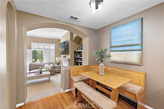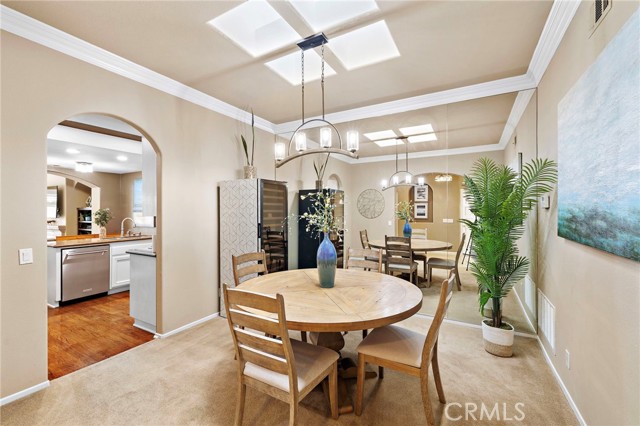 Step inside to an airy floor plan illuminated by skylights that bathe the home in soft, natural light. The kitchen features a casual eat-in dining nook and opens to a welcoming bar area—an ideal spot for morning coffee or evening conversation. A separate formal dining room provides the perfect backdrop for memorable dinner parties and holiday celebrations. The spacious family room, complete with a warm fireplace, sets the tone for relaxed everyday living.