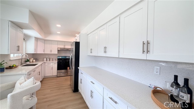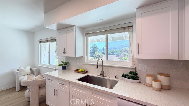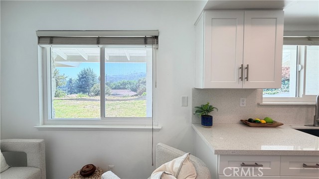 The updated kitchen shines with white shaker cabinetry, quartz countertops, stainless steel appliances, abundant counter space, and a walk-in pantry, plus a sunlit breakfast nook with mountain views. Enjoy multiple vantage points and open sightlines from the front of the home, kitchen, breakfast nook, and front bedrooms, all overlooking the surrounding neighborhood with a sense of privacy.