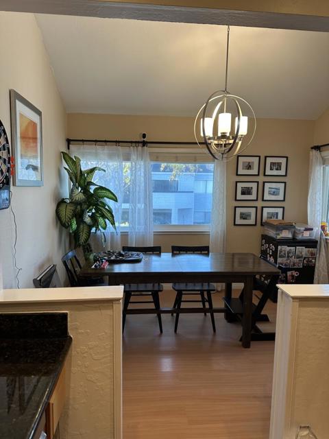 Elegant top-floor end unit with an open floor plan overlooking the waterway and pool. This home offers three spacious bedrooms, two upgraded bathrooms, and in-unit laundry. Vaulted ceilings and clerestory windows fill the space with natural light, while the remodeled kitchen adds modern style and functionality. Beautifully updated and move-in ready, the home features fresh contemporary finishes, hardwood flooring, a cozy fireplace, and a sheltered patio with stunning water views. Additional highlights include one enclosed garage and a community youre sure to love. HOA amenities include a pool, spa, clubhouse, and boat dock. This home truly epitomizes contemporary living.