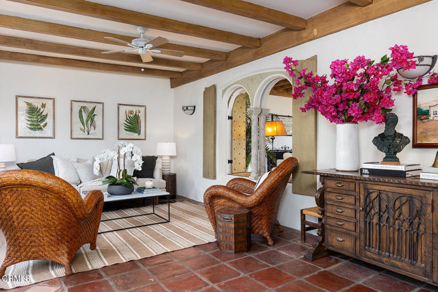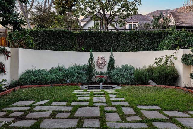 Designed and built by Wallace Neff, AIA for his wife Louise, the Neff Honeymoon Cottage is a treasure in Altadena. Beautifully sited on a large lot, this piece of Altadena history has been exquisitely maintained and preserved, and remarkably survived the Eaton Fire in 2025. Tucked behind mature hedges with a lush green lawn and framed by eucalyptus trees, the house is immediately recognizable as Neff's signature Spanish Colonial Revival style. A meandering path leads to the alcove front porch, an intimate greeting and a glimpse into the romance that lies beyond the front door. The front door opens to the stately living room with a beamed ceiling, warm red clay tile floors that prove there is beauty in age, an open staircase, and a decorative fireplace. Almost everywhere you look there are architectural details of interest, including arched doorways and windows, wrought iron sconces, and clever things like original interior wood shutters--you feel enveloped in history and immediately know the care that went into designing this house. To the left is the formal dining room with a sunny window out to the front yard; the authenticity of the hand troweled plaster walls that are featured in this room and throughout the home, are pronounced. The adjacent kitchen was sensitively remodeled and exudes charm with a marble top center island, decorative tiles, and hand-painted accents. A garden room off the kitchen, previously a covered porch in the original design, extends the living space and has a wall of French doors and windows that all look out to the picturesque enclosed courtyard. The main floor is complete with a small bedroom suite. Two bedrooms with a shared bath make up the second floor. The primary bedroom has a generous closet and features an inviting balcony overlooking the verdant lawn, an ideal quiet reading spot. The house is surrounded by enchanting gardens, including the central walled garden with tranquil fountain as a focal point and mature plantings that have been ornamentally pruned, further evidence of the quality of the property and the tender care taken by the present owner. It is often said that owning such a significant piece of architecture is a once-in-a-lifetime opportunity, and for this special home with its peaceful quiet elegance, this architectural opportunity rises to the level of fine art.